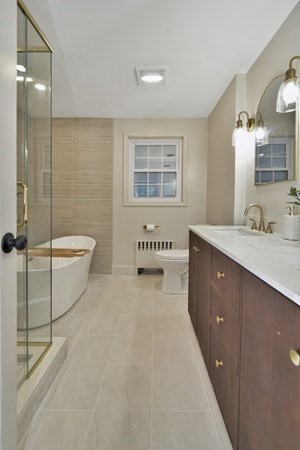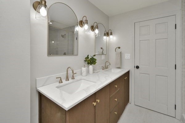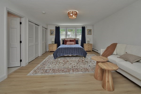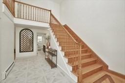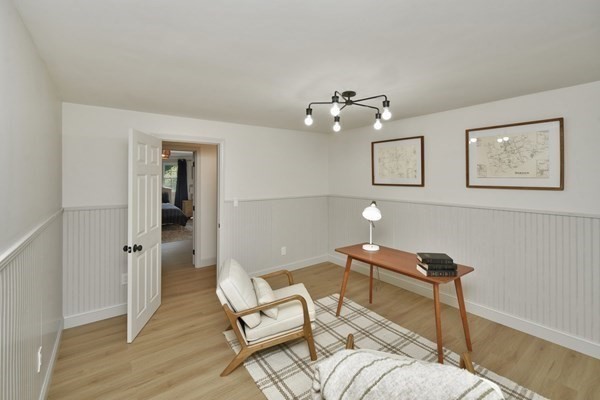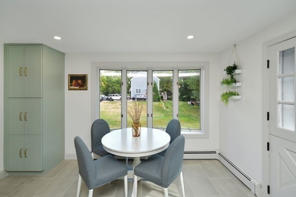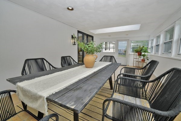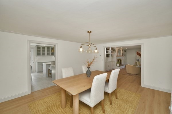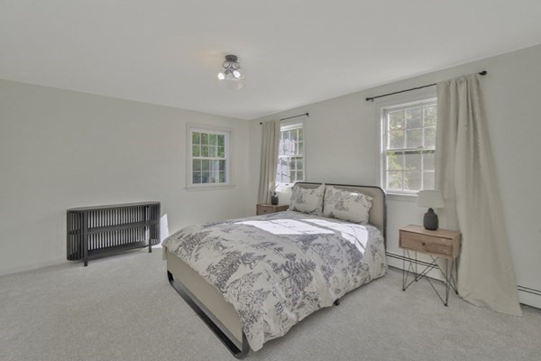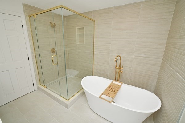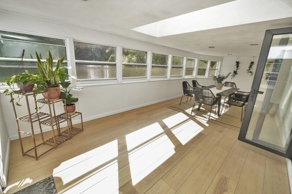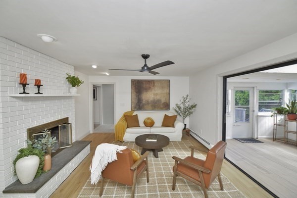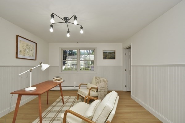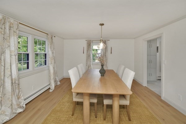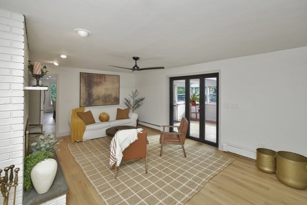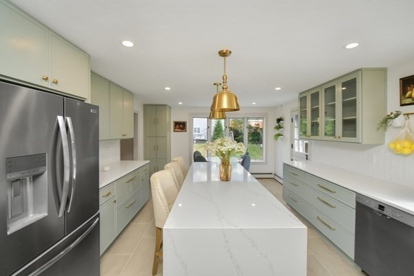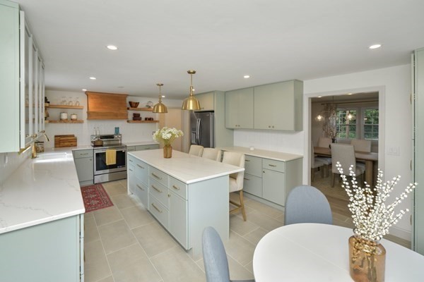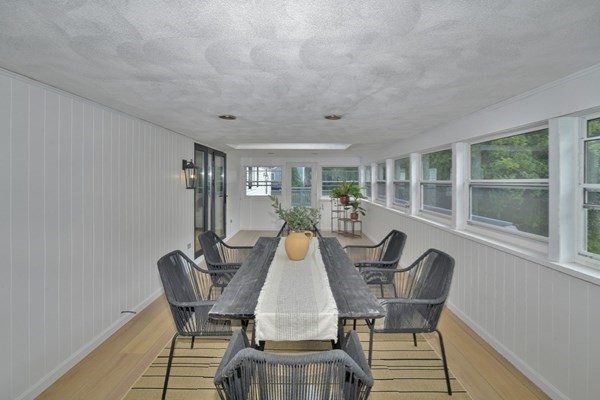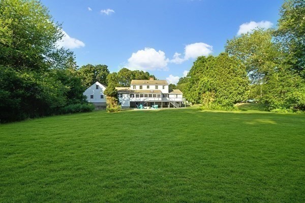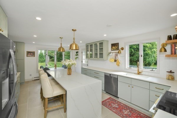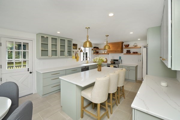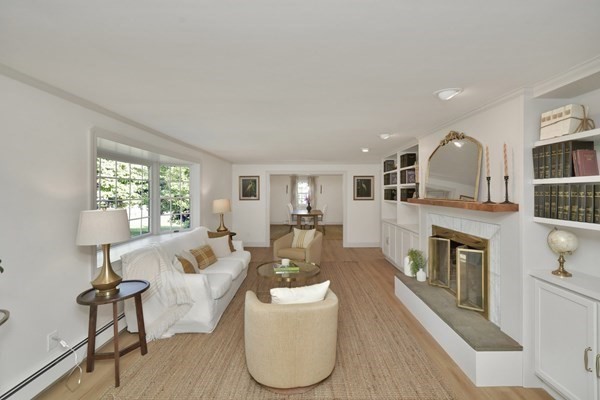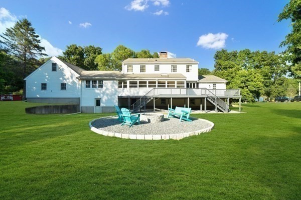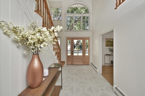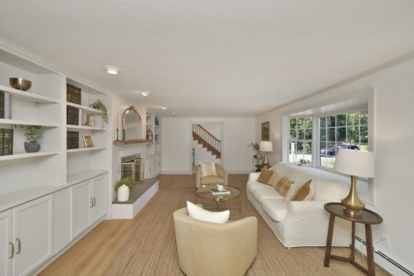 Great opportunity to own a fully renovated and professionally designed Garrison Colonial-style home with modern finishes and functional elegance. The eat-in kitchen showcases quartz countertops and a waterfall island. Anchored by a striking double-sided fireplace with marble surround and built-in bookshelves. A large glass bifold door connects the living area to a sunlit three-season porch, ideal for seamless indoor/outdoor living. Bathrooms offer contemporary tile work with high-end finishes. The oversized 3-car garage provides ample storage or workshop space. Exterior upgrades include granite steps, custom stone walkway, and welcoming front door. The level, tree-lined backyard has endless possibilities. Ideally located just off I-495 and near the MBTA commuter rail, yet surrounded by scenic wooded trails. This turn-key home combines convenience, luxury, and expansion potential, with a full-length unfinished walkout basement and a spacious attic above the garage.