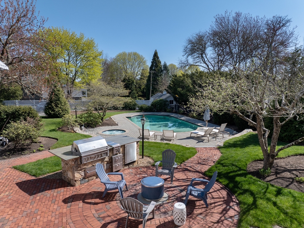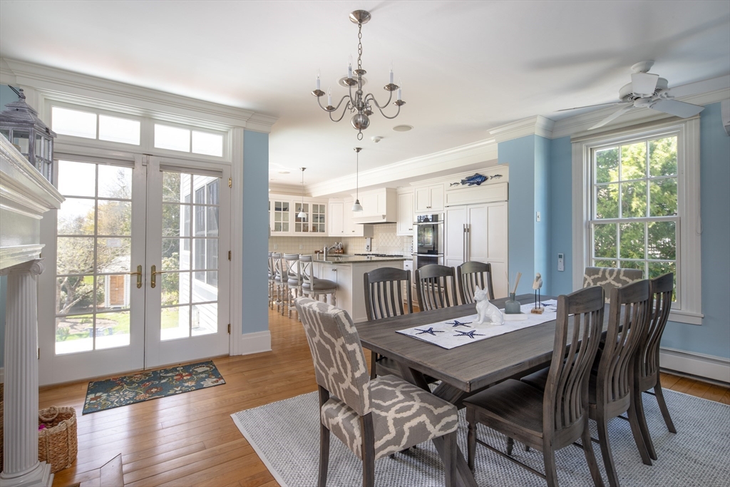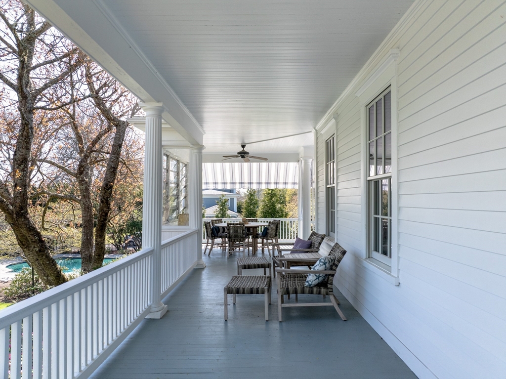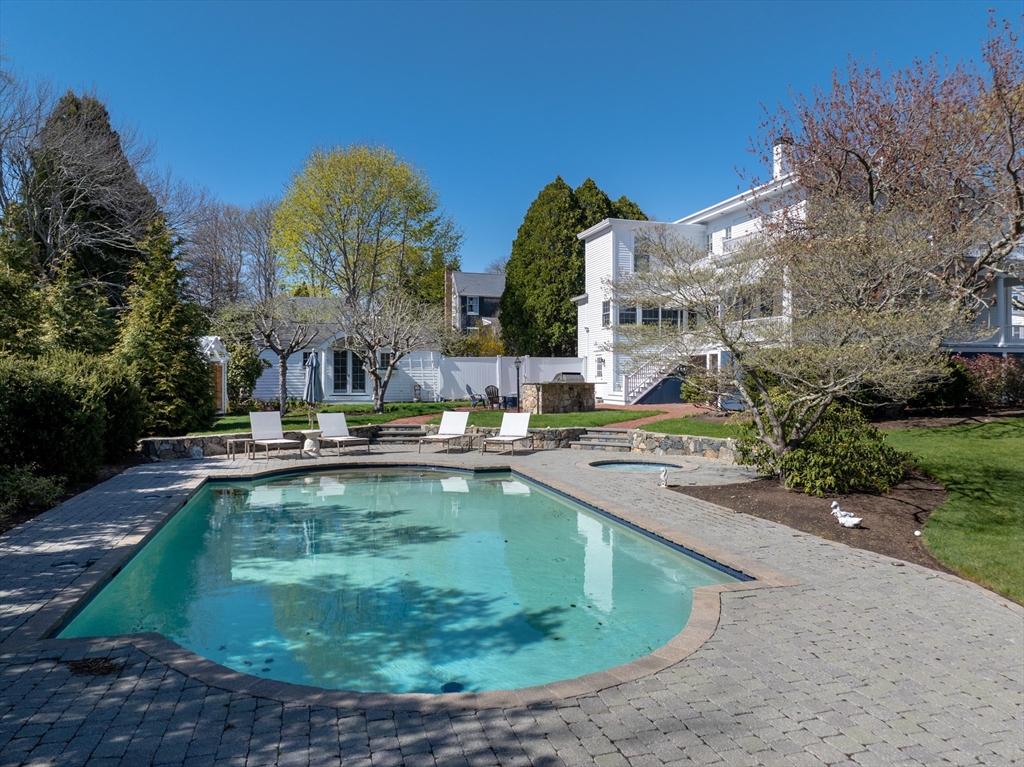 This historic 1856 village Colonial is one of the town’s finest homes. Situated on a generous fenced-in corner lot, this open-concept home has multiple outdoor porches/patios making for effortless entertaining and relaxation, while overlooking a landscaped yard with heated in-ground pool/spa, outdoor kitchen, fire pit, guest cottage and outdoor shower. Find a large gourmet kitchen on the first floor with granite countertops, island, Sub Zero refrigerator, Wolf range, and fireplaced sitting area that opens to a fireplaced living room and formal dining room w/ beautiful millwork. Second floor includes 3 br/2 full ba w/ primary suite’s built-ins, large bath and private bedroom. The partially finished basement has a full bath & wash/laundry rm all open to backyard and pool. This home has been beautifully updated, offering all the luxuries of modern living with an amazing village location close to town shops and services, waterfront, beach, general store, The Inn, and rail trail.