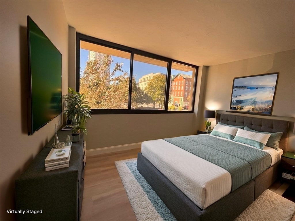 Madison Towers end unit! Open concept layout. Completely renovated with quality improvements.. Amazingly spacious kitchen with granite counters, new appliances and breakfast peninsula open to the living room with triple windows, letting in great light. Bedroom with a closet. Full bath with a tub/shower combo, vanity & newer lighting. Double entry closet for coats and extras. On-site amenities including a fitness center as well as a seasonal outdoor pool. Condo fee includes heat, water, sewer, hot water, cable (including HBO), Internet Wi-Fi, air conditioning, laundry, elevators, and exercise room, outdoor swimming pool. Located conveniently near downtown, highways, restaurants, Polar Park & entertainment. Whether transitioning from renting or simplifying your life and downsizing, this condo is a great place to call home!