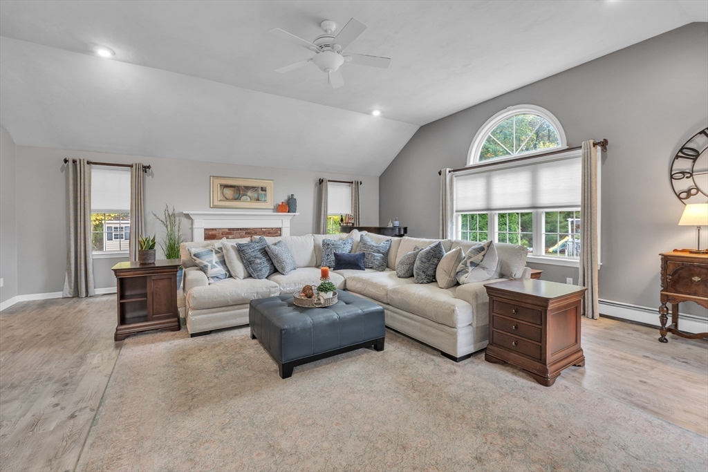 Welcome to this Beautiful three-to-four-bedroom Colonial, nestled in one of the area's most desirable neighborhoods. You will appreciate the pride of ownership and Upgrades throughout ~including the Gleaming refinished Hardwood Floors, New Luxury Laminate Flooring in the Great Room, New Kitchen Counter Tops, New Exterior Siding, Rebuilt Chimney w/cap, just to name a few! Spacious Eat-in Kitchen flows seamlessly into an Oversized fireplaced Great room with Cathedral Ceilings & Recesses Lighting, perfect for Holidays, Game Day and Get togethers! A flexible additional room on the First Floor is currently being used as a Home Office and could easily serve as a Fourth Bedroom or Guest space. Finished Lower-Level Bonus Room with additional Half-bath and Utility/Workshop! A Spacious Deck and Patio offer the perfect spot for Outdoor Dining and Relaxation. Fabulous Commuter Location just minutes to all Major Routes! Check out attached video.