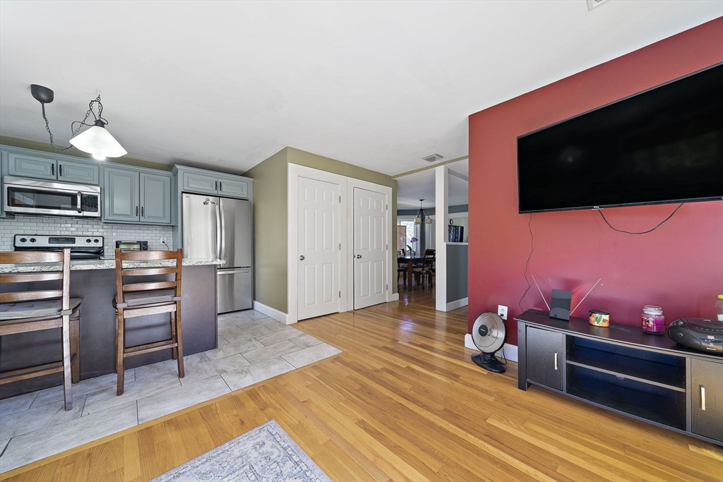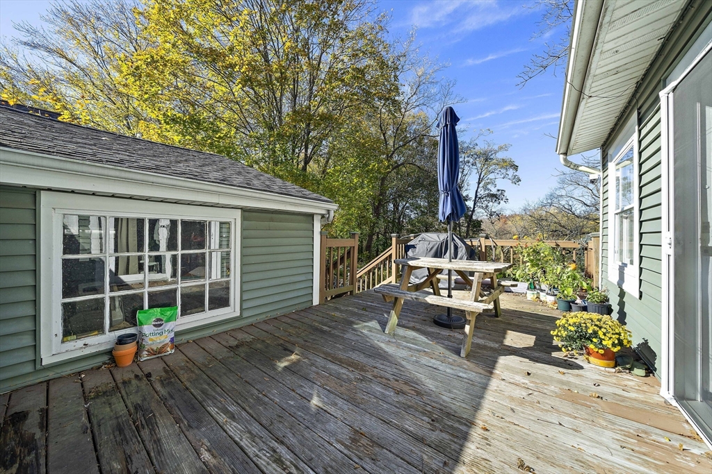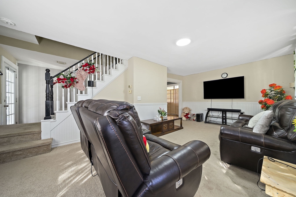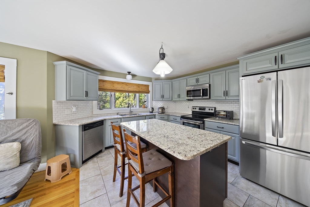 Charming and beautifully updated New England Colonial conveniently located just a short distance to all the amenities of Middleboro Center—shops, restaurants, coffee, schools, library, and commuter rail. This home blends classic charm with modern style, featuring a gorgeous kitchen with granite countertops, tile backsplash, and stainless steel appliances. Freshly painted interior, refinished hardwood floors, tile in kitchen and bath, and carpeting in bedrooms and family room. Enjoy gas heat, central air, and an updated electrical panel. The flowing floor plan offers open, airy living spaces including a finished walk-out basement with Vermont Castings gas stove and plenty of storage. The attached two-car garage connects through a spacious mudroom, and the large deck overlooks a deep, private backyard perfect for relaxing or gardening. Vinyl siding completes this move-in ready gem!