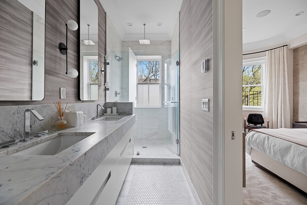 Nestled on one of the South End’s most coveted and picturesque streets, 8 Rutland Square is a masterfully renovated brownstone. Spanning 2,550 square feet across three levels, this sun-filled upper triplex offers 3+ bedrooms and 3.5 bathrooms, thoughtfully designed for modern, and luxurious living. The elegant bow-front living room features soaring ceilings, intricate millwork, custom built-ins with ample storage solutions, and a gas fireplace, creating a warm and inviting atmosphere. At the heart of the home, a chef’s kitchen with an eat in dining area is outfitted with top-of-the-line Wolf and Sub-Zero appliances, an oversized island, and direct access to a private deck with a gas grill, ideal for entertaining or everyday enjoyment. With custom lighting + closets, home audio and surround sound, and a roof deck with sweeping city views, every detail has been considered for maximum comfort + convenience. A deeded parking space on the heated driveway completes this exceptional offering.