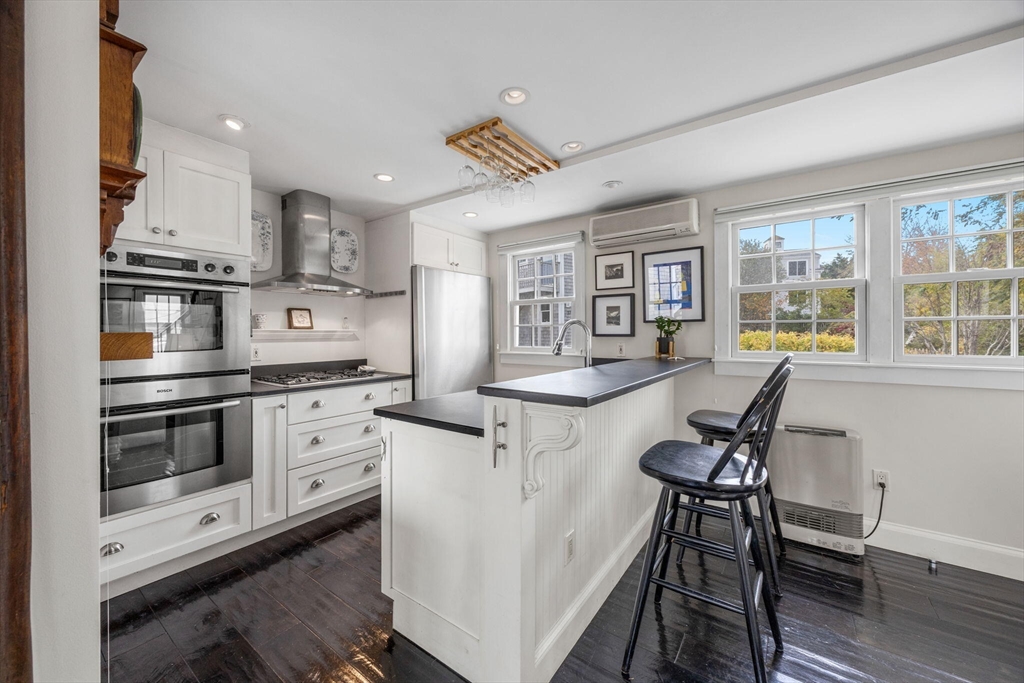 Freestanding and beautifully maintained, this quintessential West End cottage—rebuilt from the ground up in 2005—is part of a serene five-unit association on Pleasant Street. Filled with natural light, the home offers nearly 900 sq.ft. of well-designed living across three levels with seamless indoor-outdoor flow. The open main level features high ceilings, ebony-lacquered wood floors, a double wall oven kitchen, and a fireplace with built-ins. The primary suite includes a built-in king bed, study, and sunny deck, while a cozy loft opens to a rooftop deck perfect for sunset cocktails. With new roof, siding, and decks (2024), air conditioning, basement storage, and parking, this inviting retreat is moments from Commercial Street, beaches, and dining.