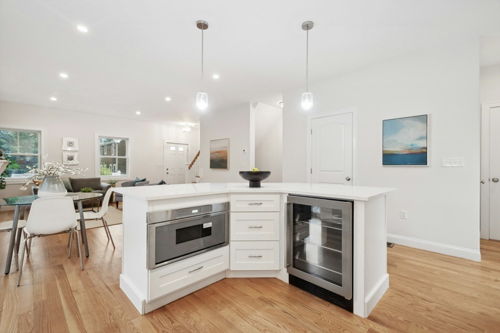 Enjoy city living on a quiet side street near Fresh Pond. New construction Townhouse home featuring an open concept with a beautiful kitchen with many upgrades! The refrigerator, 6 burner gas stove & exhust ,dishwasher & microwave are Thermador. There is also a wine cooler. A slider from the kitchen leads to a deck overlooking a private yard.A dining area is off the living room with gas fireplace which contributes to the ambience of the home. A half bath completes this level. Second level has a primary bdrm and bath and two add'l bdrms and full bath. Access to a roof deck on this level. Lower level room has various uses and has a 3/4 bath w/double vanity. There is direct entry to this area. W&D hook-up installed. This home has it all Location, space and affordable asking price. Exterior Hardie Siding. Direct entry from garage to mud room & kitchen. Gas forced hot air - 2 zone w/extra supplemental elec. in LL. Seller welcomes request offers w/request for buyer compensation.