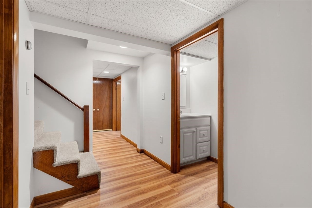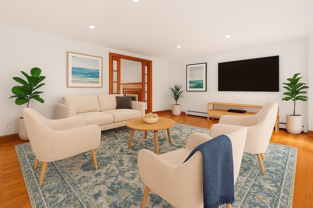 Well-maintained ranch set on a large, level, and fully fenced lot offering wonderful privacy. This home features an attached one-car garage plus two driveways for ample parking. Inside, you’ll find hardwood floors, a bright living room with a wood-burning fireplace, and a sun-filled family room with large windows overlooking the expansive backyard. The kitchen includes updated appliances, Corian countertops, and plenty of cabinet space. Convenient first-floor laundry adds ease to everyday living. The lower level offers bonus finished rooms with new laminate flooring—ideal for guest space, a home office, a gym, or an additional family room. Enjoy comfortable single-level living in a convenient location, close to local beaches, downtown shops, restaurants, and parks. Don’t miss the chance to make this well-maintained home your own. Showings begin after the broker open house on 11/5. Several photos are virtually staged.