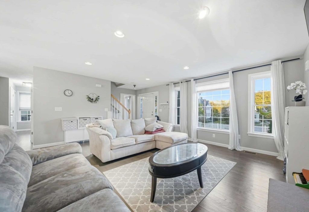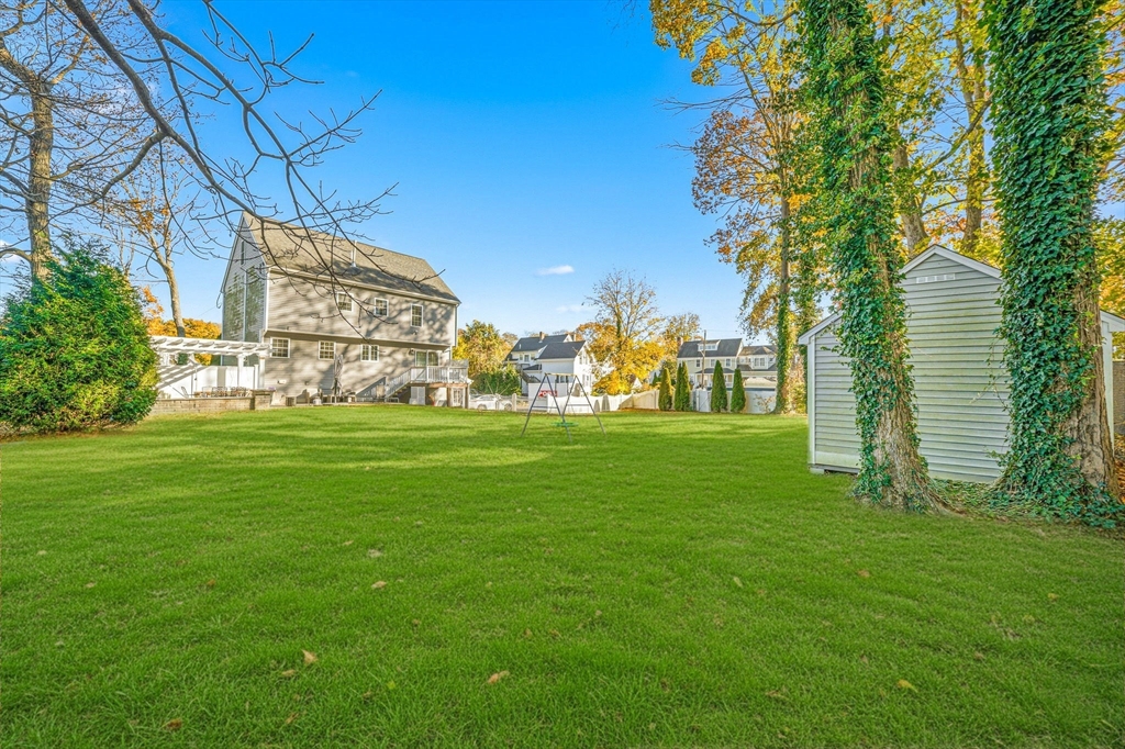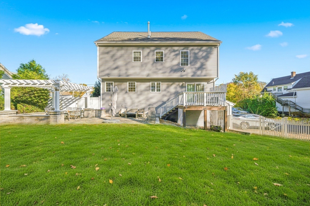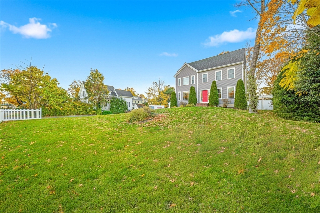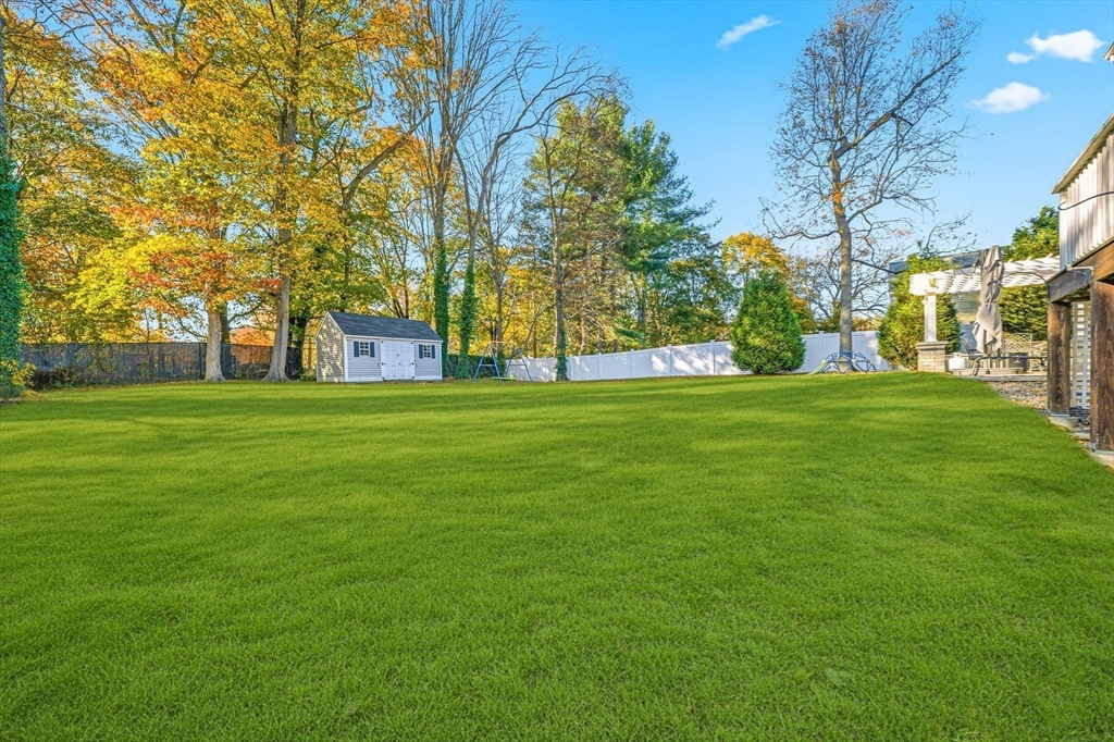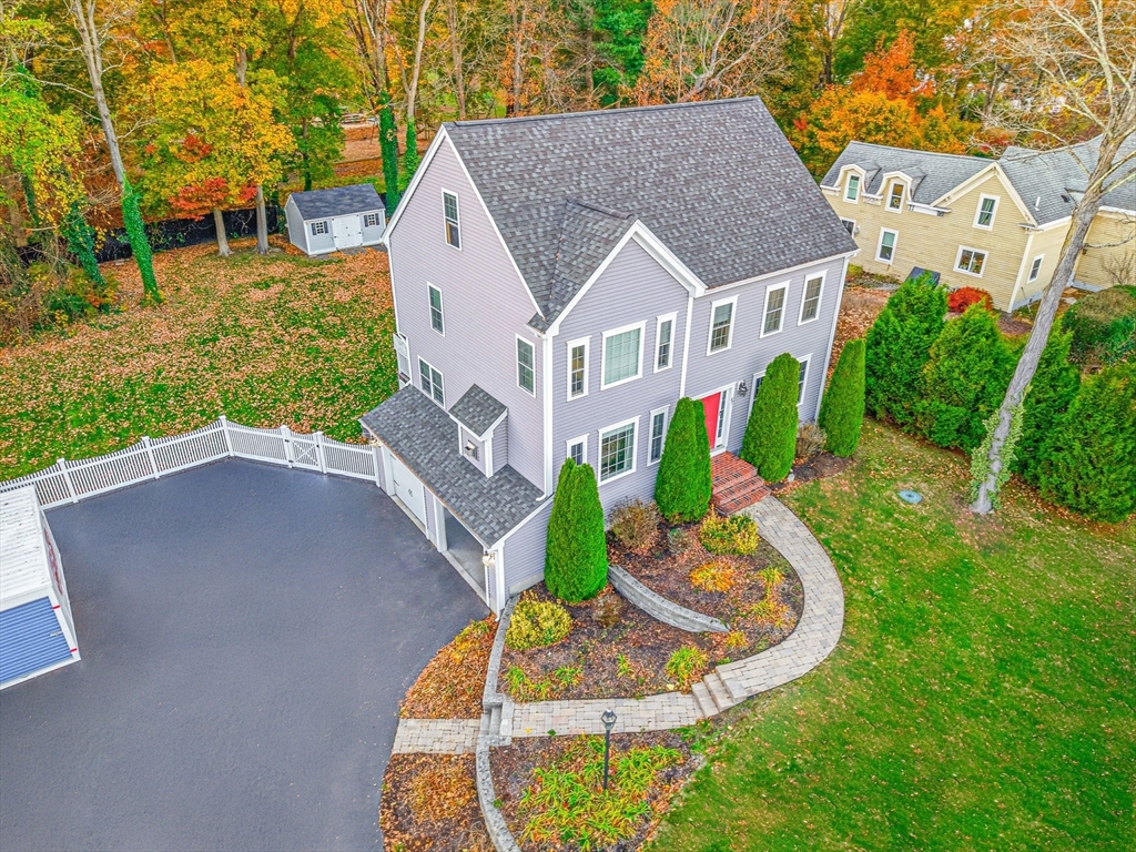 Energy-efficient 2013 built Colonial located in the highly sought-after Village area of North Easton, directly next to Frothingham Park! Enjoy the convenience of short distance to schools, the library & downtown. This modern home features an open floor plan w/ a charming living room offering a gas fireplace, a formal dining room, half bath, a pantry/laundry room, recessed lighting & gleaming hardwood floors throughout. A spacious kitchen boasting upgraded soft-close cabinetry, granite countertops, stainless steel appliances, gas stove, center island, subway tile backsplash, & sliding door access to the huge all fenced in backyard/deck/paver patio & custom pergola! 2nd floor has 3 good size bedrooms (one of them is an en-suite bedroom w/ walk-in closet) & another den. The walk-up attic has a home office & a versatile bonus room. Central Heat&AC/newer condenser & AC lines/tankess water heater/whole-house humidifier/gutter guards/2 cars garage, Reeds Ferry shed & irrigation setup.
