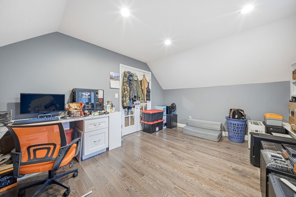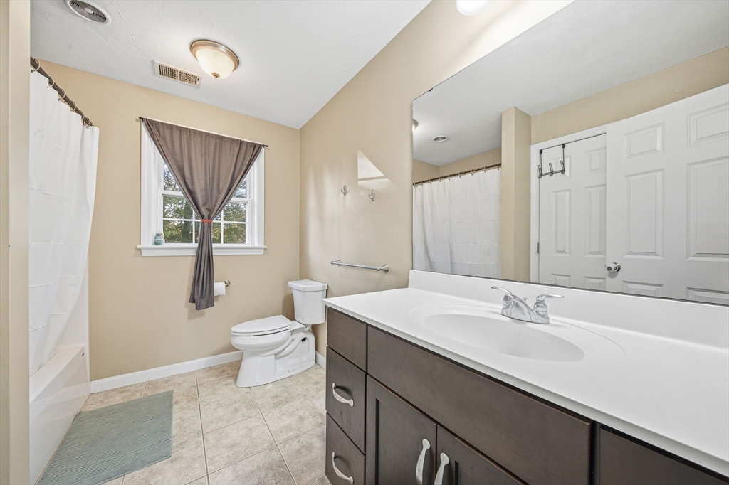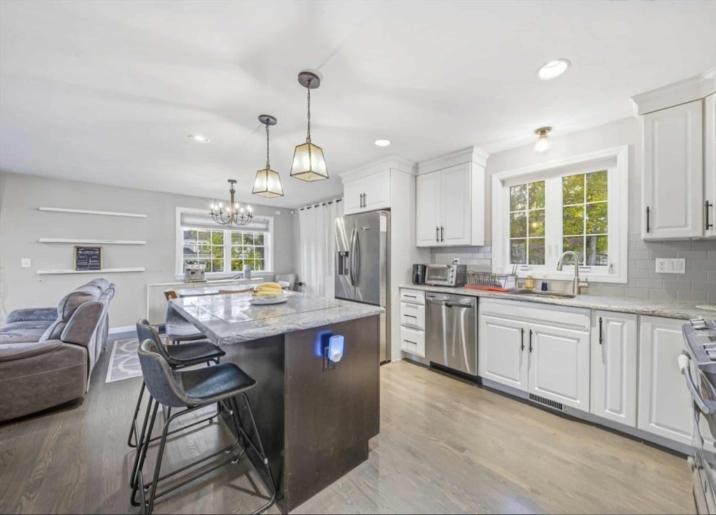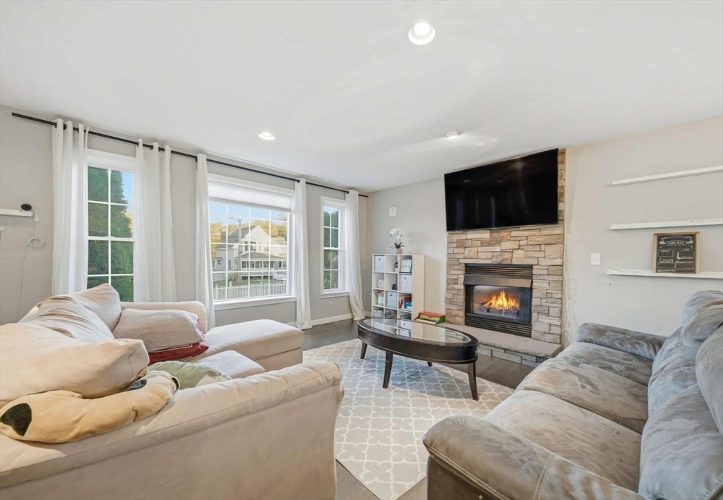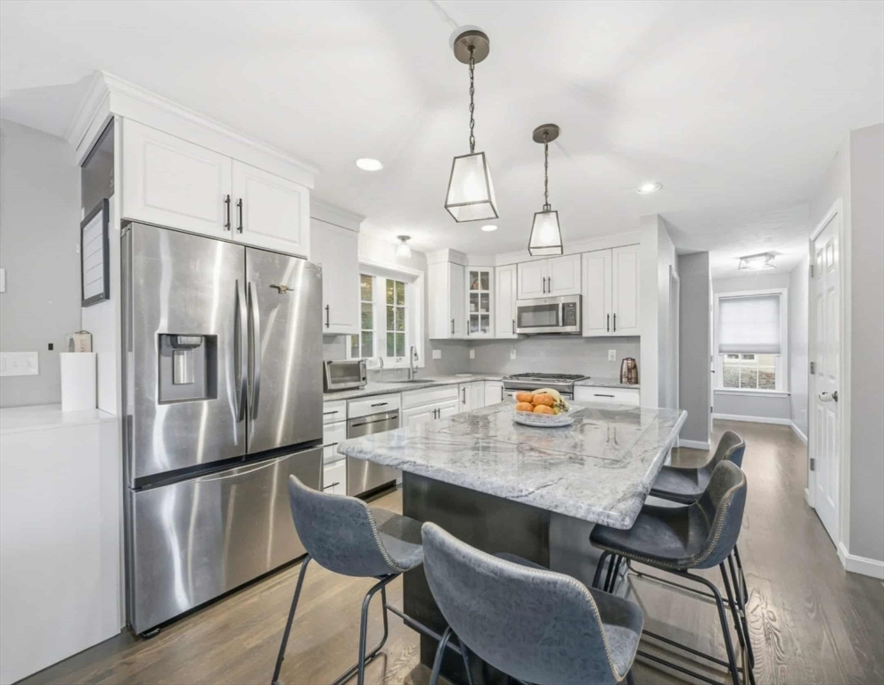 Energy-efficient 2013 built Colonial located in the highly sought-after Village area of North Easton, directly next to Frothingham Park! Enjoy the convenience of short distance to schools, the library & downtown. This modern home features an open floor plan w/ a charming living room offering a gas fireplace, a formal dining room, half bath, a pantry/laundry room, recessed lighting & gleaming hardwood floors throughout. A spacious kitchen boasting upgraded soft-close cabinetry, granite countertops, stainless steel appliances, gas stove, center island, subway tile backsplash, & sliding door access to the huge all fenced in backyard/deck/paver patio & custom pergola! 2nd floor has 3 good size bedrooms (one of them is an en-suite bedroom w/ walk-in closet) & another den. The walk-up attic has a home office & a versatile bonus room. Central Heat&AC/newer condenser & AC lines/tankess water heater/whole-house humidifier/gutter guards/2 cars garage, Reeds Ferry shed & irrigation setup.