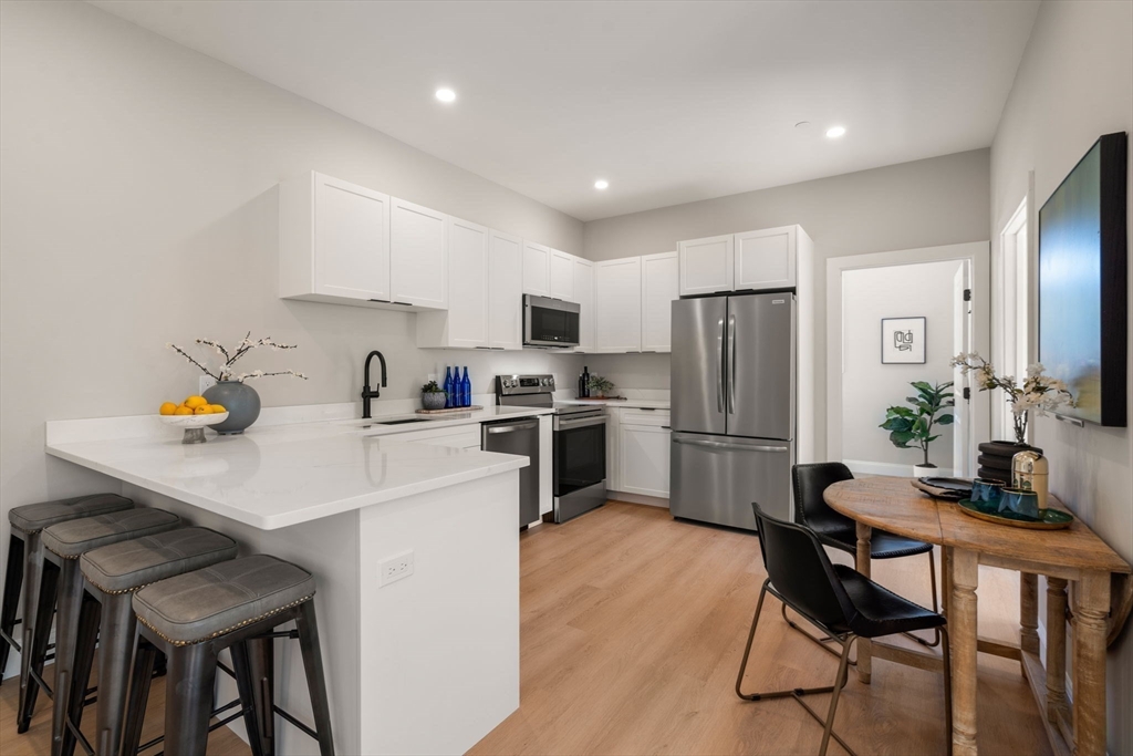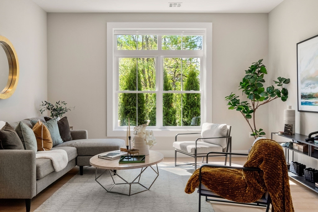 Introducing Unit 201 at Baldwin Crossing — Wilmington’s newest boutique condo community overlooking the park. This thoughtfully designed 1-bedroom, 1-bathroom home features an open-concept layout with clean lines and high-end finishes. The sleek gourmet kitchen showcases quartz countertops and stainless steel appliances, while expansive transom windows fill the space with natural light. Enjoy the convenience of in-unit laundry, energy-efficient systems, central air, elevator access, a deeded parking spot with access to EV charging stations, and exterior security for added peace of mind. Situated directly across from Yentile Farm Park, this home offers leafy views and access to serene green spaces perfect for relaxation and recreation, all just minutes from shops, dining, the commuter rail, and I-93 & I-95. Baldwin Crossing is a rare opportunity to own brand-new construction in Wilmington without compromising on location, lifestyle, or value. Don’t miss out!