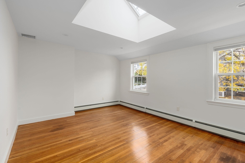 Renovated, move-in ready, 3-level JP townhome w/ private entrance & parking. Ideal open layout w/ stylish kitchen + dining area w/ direct access to your spacious deck. This beautifully designed, sun filled home has many recent improvements since the major 2020 renovation. Enjoy 3-zone mini-split ductless air-conditioning (2021). The lower level was fully finished (2022) to create a perfect work-from-home space, media/playroom, or guest suite w/ direct access to your parking space. Both bedrooms upstairs are generously sized & have skylights w/ integrated blinds. Newly painted (2025), upgraded 200 amp electric, 2020 new plumbing & tankless hot water heater. You'll love living in the Historic "Bourne" neighborhood in JP, coveted for it's charming architecture & mature trees. Conveniently located near Forest Hills T station w/ Orange line, busses, & Commuter Rail, plus Bluebikes at your corner. Easy access to the incredible Harvard Arboretum, Longwood Medical, Faulkner Hospital, & more!