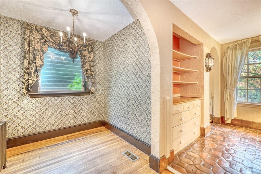 Charming Spanish-style home in desirable Winchester! This unique property features a beautiful terracotta roof and timeless architectural details. The first floor welcomes you with a foyer which leads to an astounding great room, perfect for entertaining or hosting family gatherings. The kitchen opens seamlessly to the dining area. Additionally an inviting enclosed patio provides space to relax or enjoy morning coffee. A cozy sitting area and convenient half bath complete the main level. Upstairs, you’ll find two comfortable bedrooms and a renovated full bathroom with modern finishes. The lower level offers an unfinished basement ideal for storage or future expansion, plus an attached garage for added convenience. Whether you’re an investor seeking potential or an end user looking for a fixer-upper, this home presents an incredible opportunity in one of Winchester’s most sought-after neighborhoods.