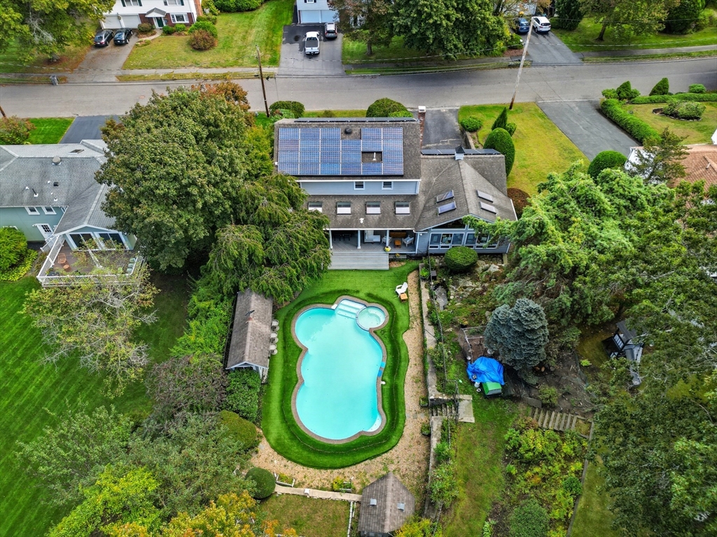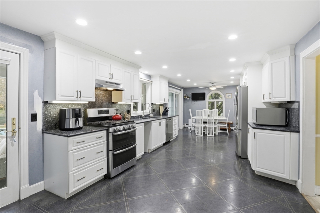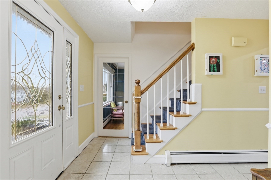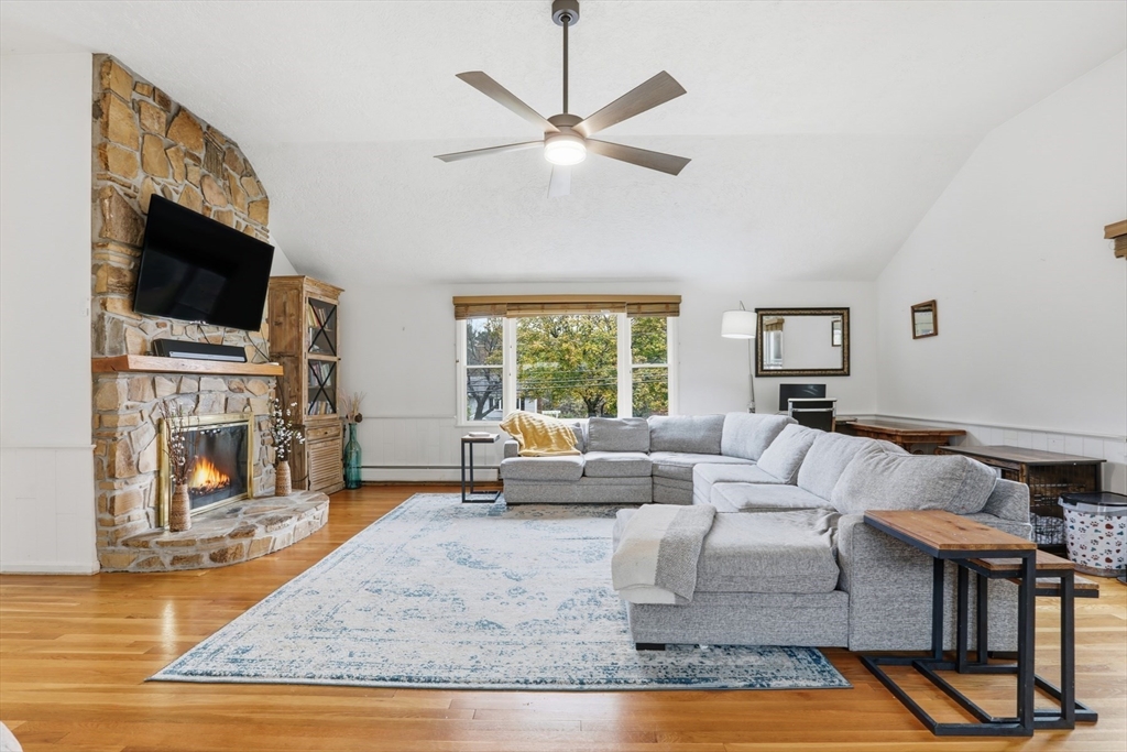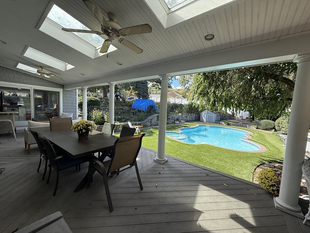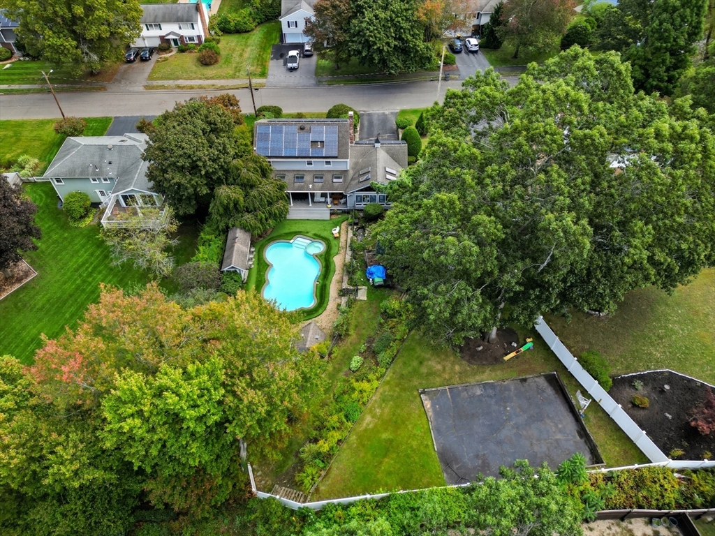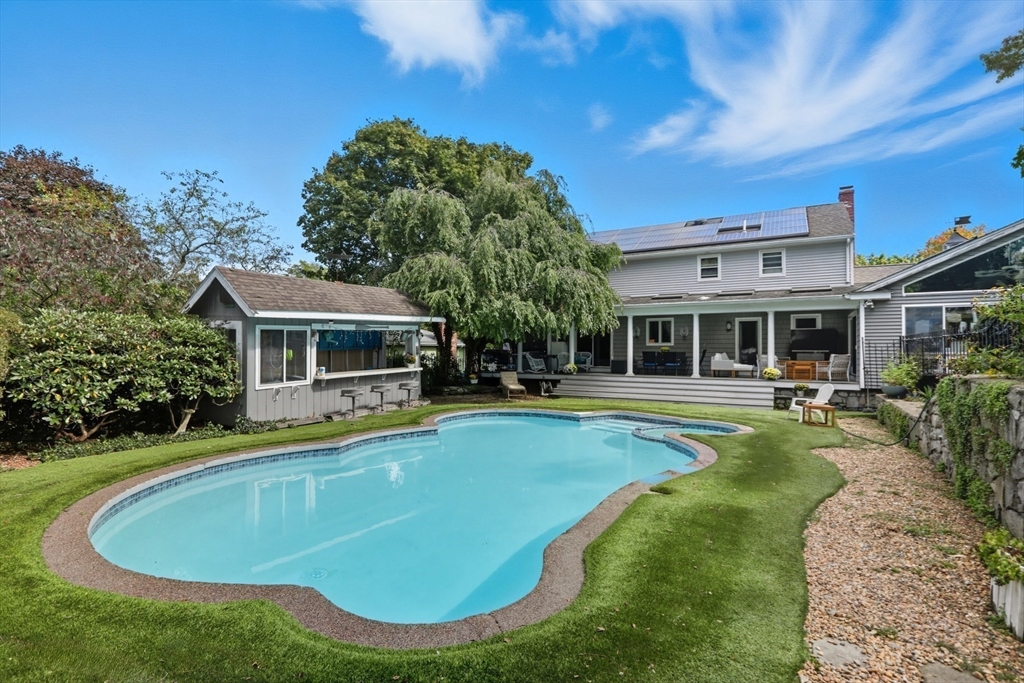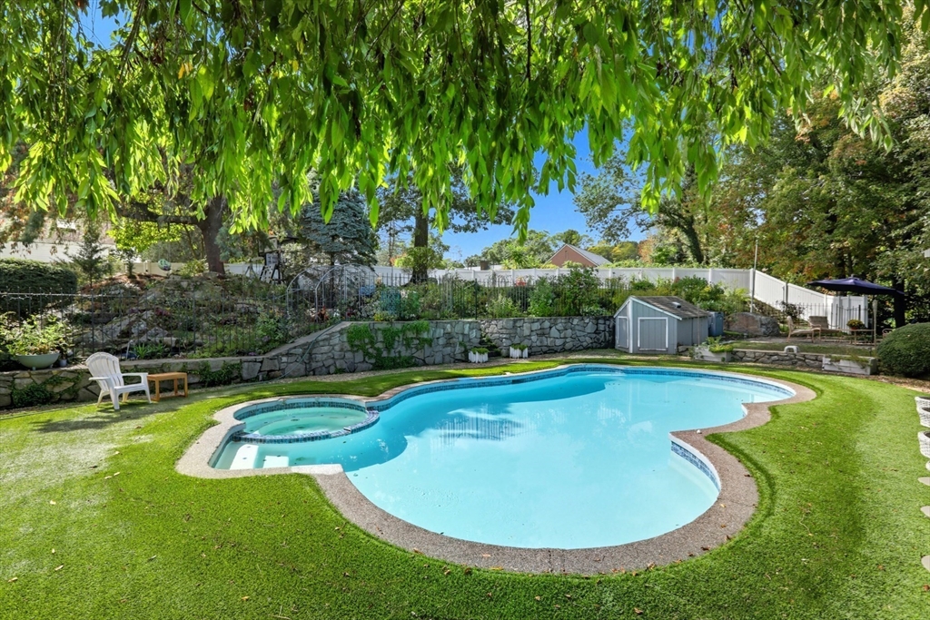 Welcome home to this picture-perfect 3-bedroom, 3-bath home that truly has it all! Step inside to find beautiful hardwood floors, a spacious family room with vaulted ceilings and a cozy wood-burning fireplace, and an eat-in kitchen perfect for family meals. The main level also offers a formal dining room, bright home office, and a half bath with laundry. A stunning sunroom overlooks your own backyard retreat — complete with a heated inground pool, relaxing spa, and covered patio with skylights, recessed lighting, and ceiling fans. Enjoy the cabana, playground, basketball court, chicken coop, and lush landscaping. Upstairs features three generous bedrooms, including a large primary suite with walk-in closet and private bath, plus a full hallway bath. The finished basement adds even more space for play, hobbies, or guests, and a two-car garage completes this beautiful home!