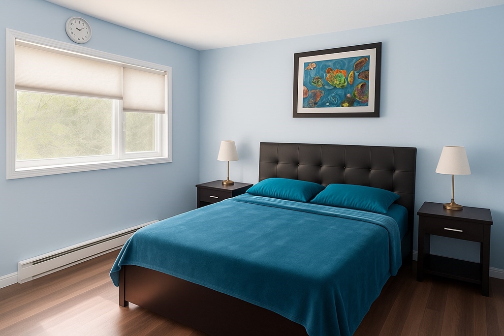 Welcome to the desirable Highwood III community! This move-in ready 2-bedroom, 1.5-bath townhouse offers 1,121 sq. ft. of updated living space. The first floor features a bright and spacious family room with hardwood floors, recessed lighting, and a fireplace with a slider leading to a private patio. A formal dining area with ceiling fan & an updated galley-style kitchen with quartz counters, pantry, and brand-new appliances complete the main level. Upstairs, you’ll find two comfortable bedrooms and a convenient laundry closet. The primary bedroom has two closets and a private balcony, while the second bedroom includes a walk-in closet. Recent upgrades include hardwood flooring throughout and all brand new appliances—making this home truly move-in ready by Jan-end 2026.The Highwood III neighborhood is peaceful and family-friendly, with a park nearby, Franklin High School & Middle School just minutes away, as well as shopping, commuter rail & highway access.