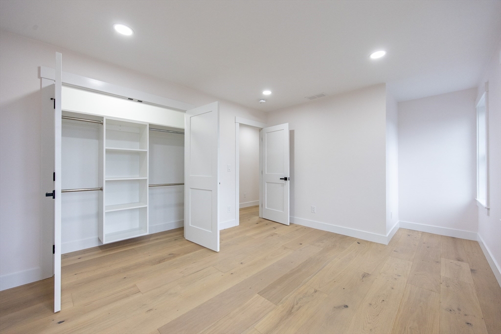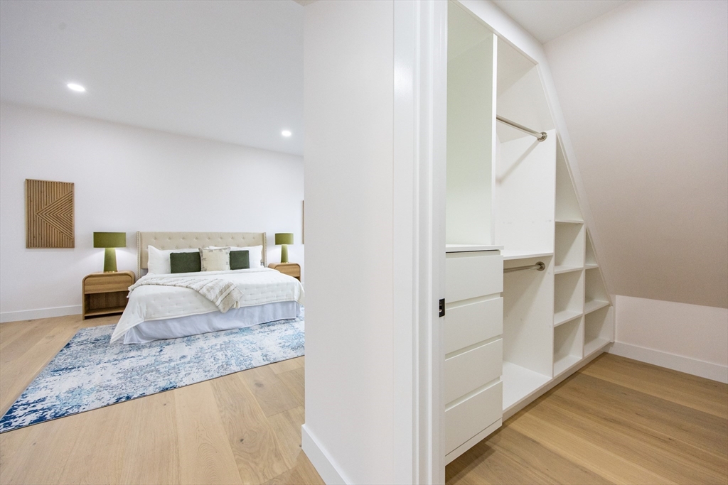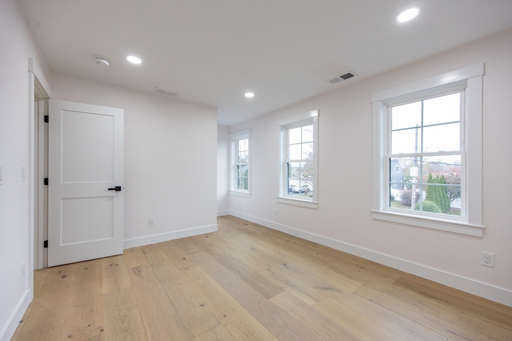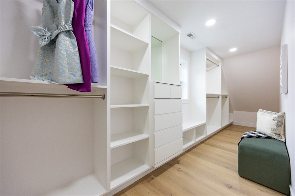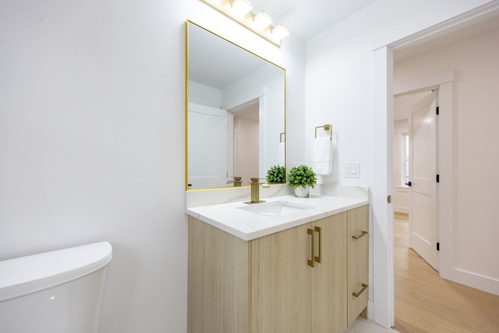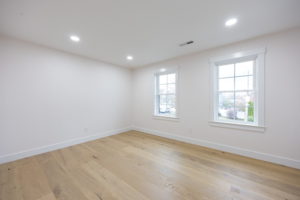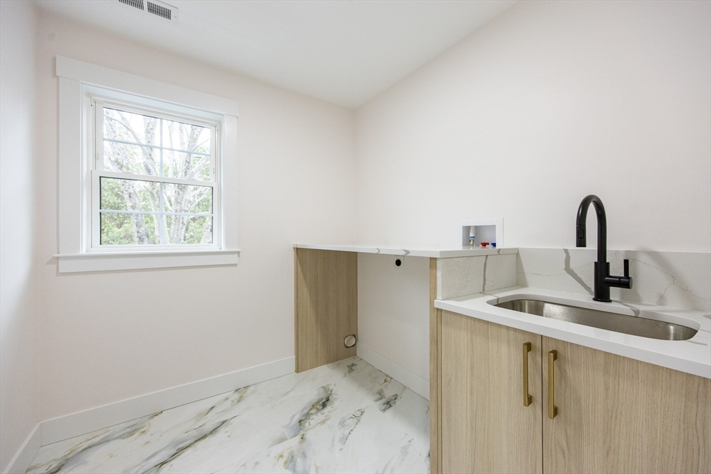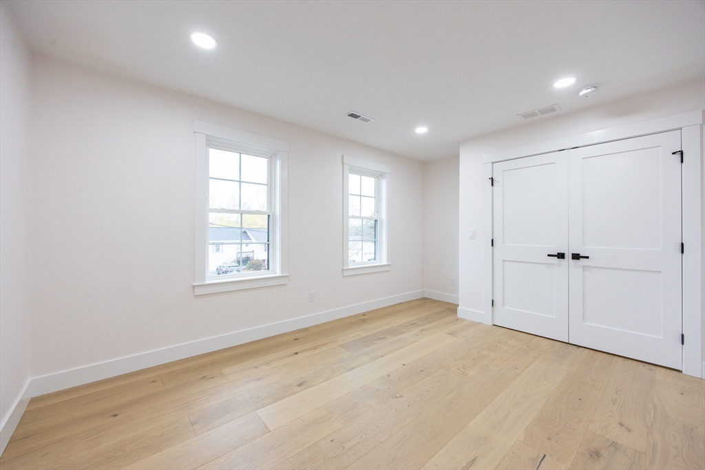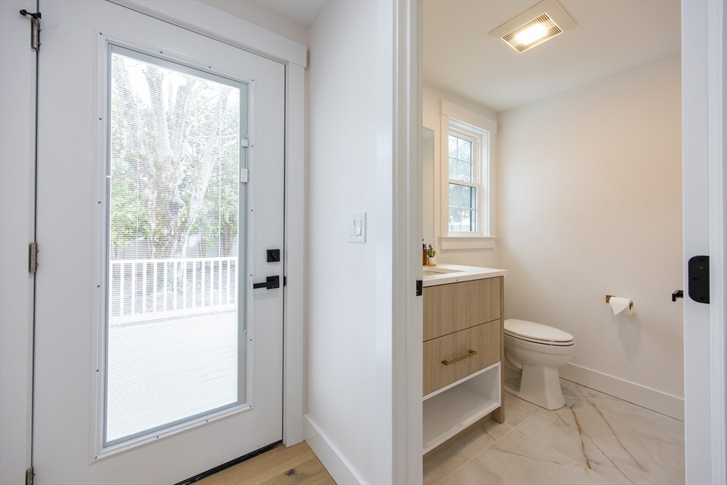 Fully Renovated Colonial Farmhouse! This stunning 4-bedroom, 3.5-bath home has been completely rebuilt from the studs up, blending timeless farmhouse charm with modern design. The sun-filled, open-concept layout features engineered hardwood flooring and a spacious living room and dining room with a cozy wood-burning fireplace. The chef’s kitchen is cabinet-packed and showcases quartz countertops, a matching backsplash, and sleek modern appliances, plus a frameless door that leads to the pantry for additonal storage. Upstairs, the luxurious primary suite offers two expansive closets and a spa-like bath with a tiled stand-up shower. A full laundry room on the second floor adds convenience. All bedroom closets feature closet systems & lighting. The finished lower level includes a full bath and exterior access—perfect for a future ADU. Enjoy the fully vinyl-fenced yard ideal for pets and play. Every detail of this home has been thoughtfully designed for comfort, style, and functionality.