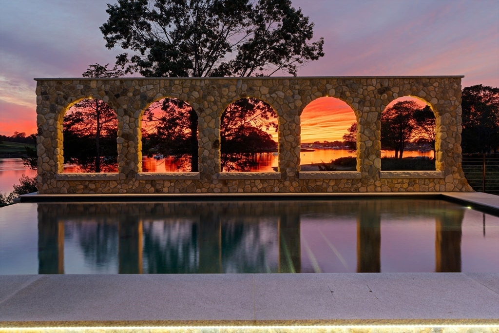 Discover an unparalleled opportunity at 140 Livingstone—an exquisite custom-built residence that exemplifies superior quality. Nestled on nearly 2 acres, this home offers exceptional privacy and serenity. The main house features 4 luxurious bedrooms, each with its own ensuite bathroom, along with 3 additional half bathrooms, a sunroom, and a home office. The primary suite offers breathtaking water views and boasts a private deck, dual walk-in closets, cozy gas fireplace, double vanity, freestanding soaking tub, and a spacious walk-in steam shower. The property showcases expertly landscaped grounds with fruit trees, raised garden beds, and a heated infinity pool offering stunning vistas of the Crane River and Kernwood Country Club. It's an entertainer's dream, both indoors and out, featuring a poolside guest house, an outdoor kitchen and bar, a pizza oven, as well as a gourmet chef's kitchen and a butler's pantry. Every corner of this home is adorned with high-end finishes and features.