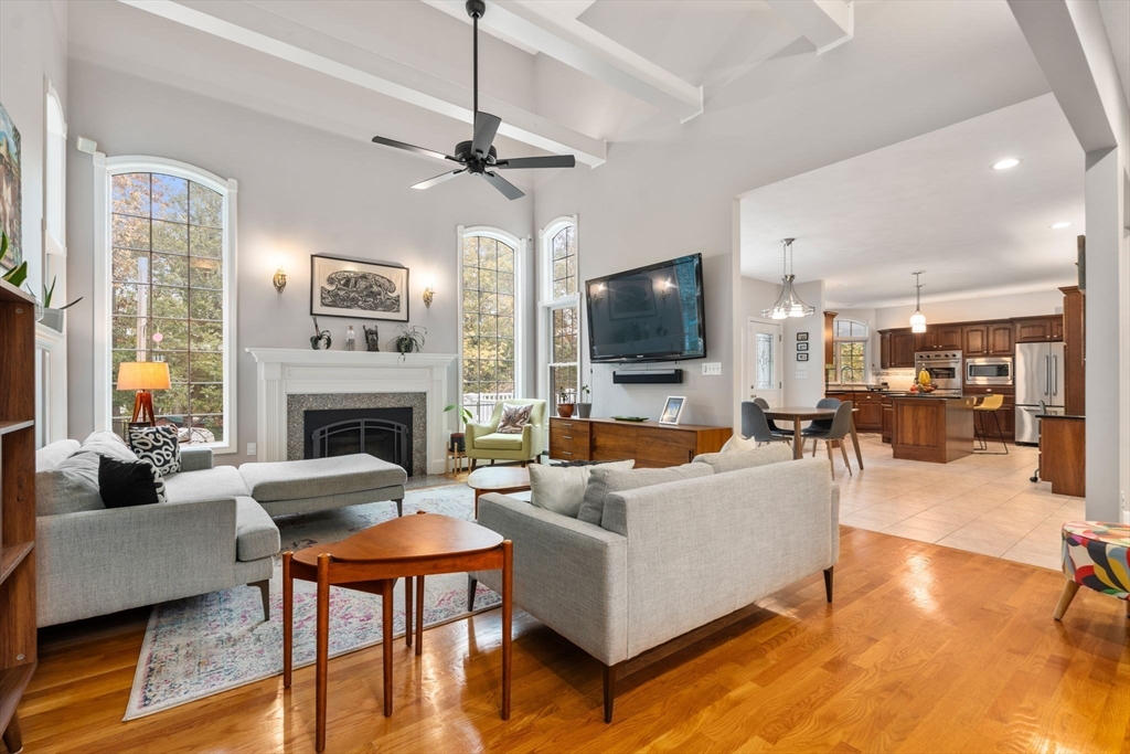 Beautifully sited on a landscaped lot in one of Danvers’ premier neighborhoods, this custom Colonial offers exceptional space, flexibility, and style. Step outside to a Lynx outdoor kitchen with double cooktop, grill, sink, bar seating, and fire pit, perfect for year-round entertaining. Inside the gourmet kitchen features a Thermador induction cooktop and Viking double ovens, opening to formal living and dining areas ideal for hosting. A cathedral-ceiling family room with gas fireplace provides a warm, inviting retreat. Upstairs, the primary suite offers a spa-like bath with Jacuzzi tub, double vanity, and separate shower. A main-level office or bedroom overlooks the yard, while the lower-level in-law suite includes a kitchen, living area, bedroom, and bath, perfect for guests or multi-generational living. Extended finished space adds room for a gym, game area, or media lounge. Updated roof, renovated deck, and owned solar panels complete this turn-key home.