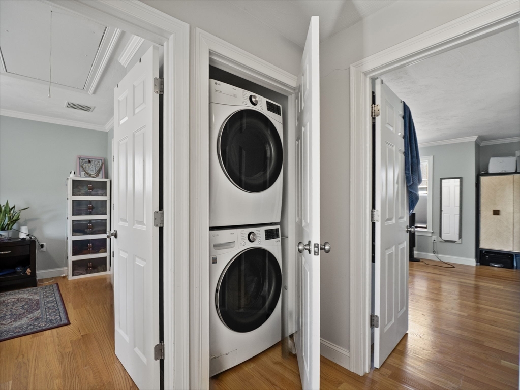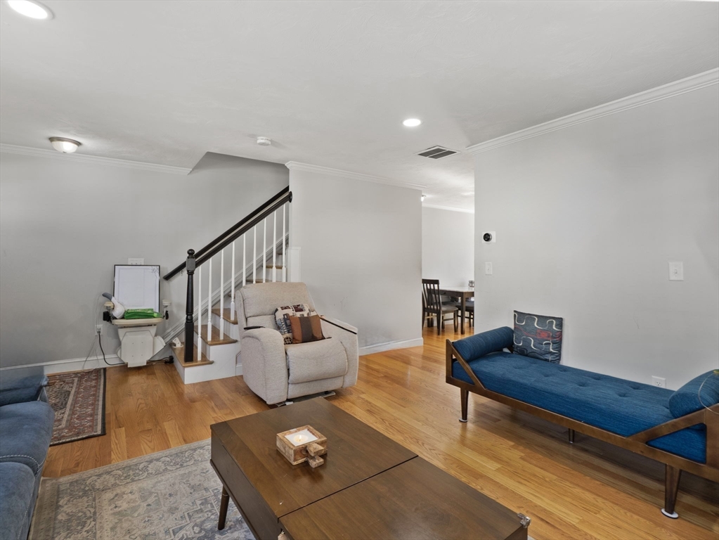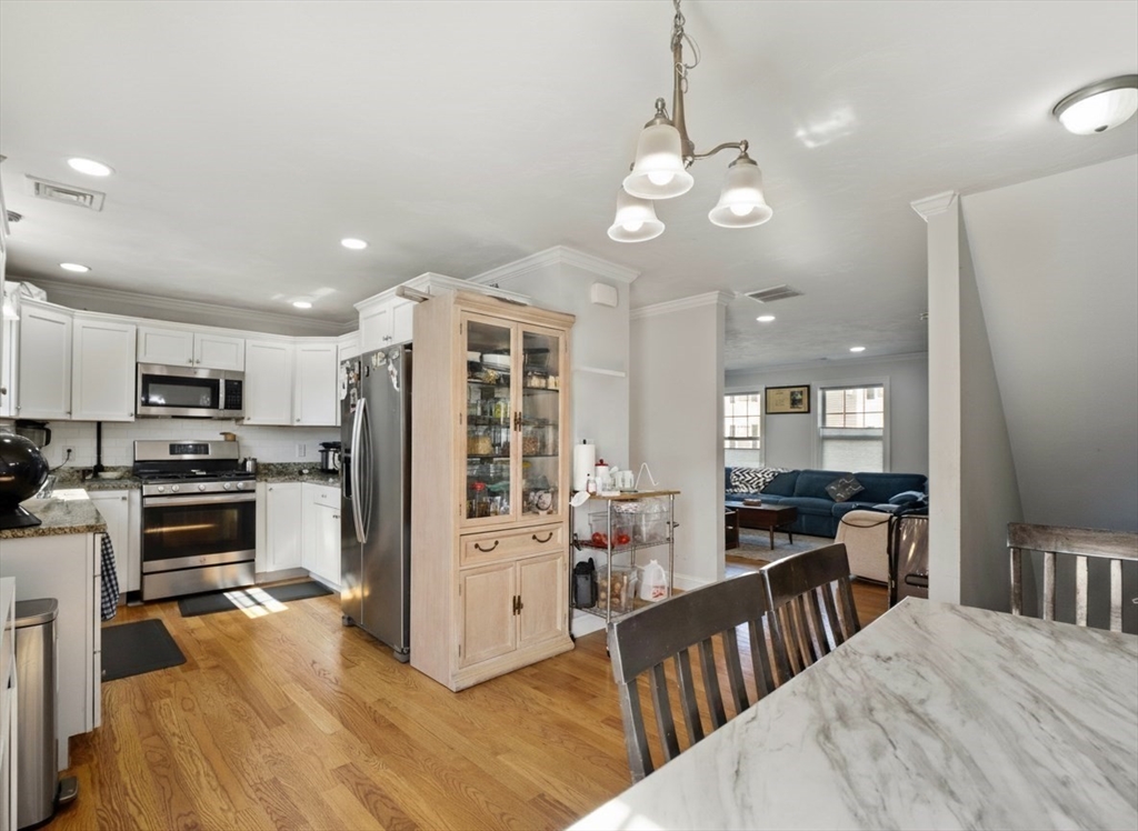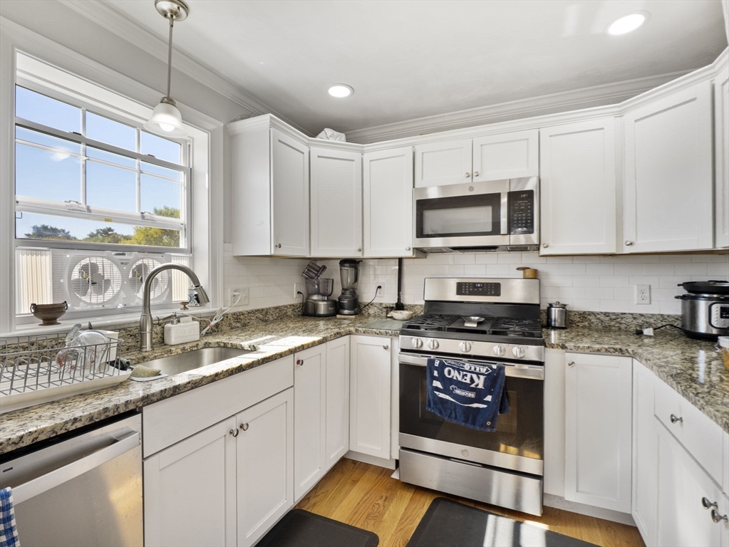 Luxury Townhome in Mill City Crossing Community. This meticulously maintained 3 bedroom, 1.5 bath tri-level Townhouse feature an open concept kitchen with upgraded energy efficient stainless appliances, natural-gas range, abundance of cabinetry, granite countertops, formal dining area and exterior access to the deck through a french glass door. The spacious fireplaced living room features oversized trim, crown molding, recessed lighting and hardwood floors throughout. The third floor has two generously sized bedrooms, the primary bedroom includes his and hers french door closets, private attic access for additional storage, laundry area and a full bath w/ granite countertops. Built in 2021. Great commuter location! Conveniently close to Chelmsford, Billerica, MBTA, UMass Lowell, Shopping, Restaurants, Downtown, the Lowell connector and Major Routes 3, 3A, 110, 113, 225, 4 & 495