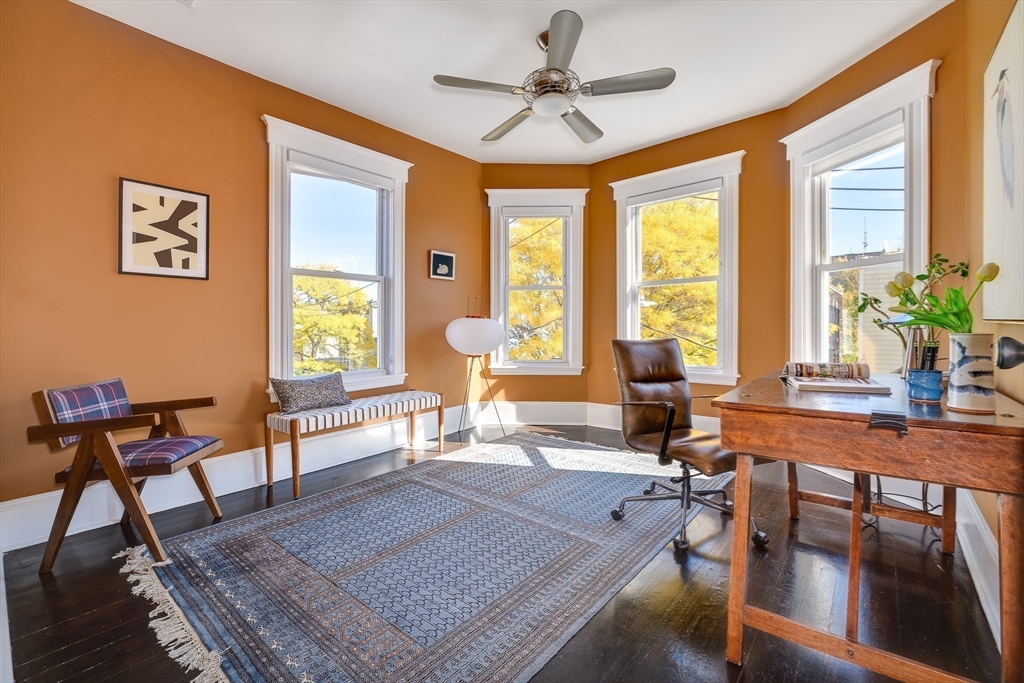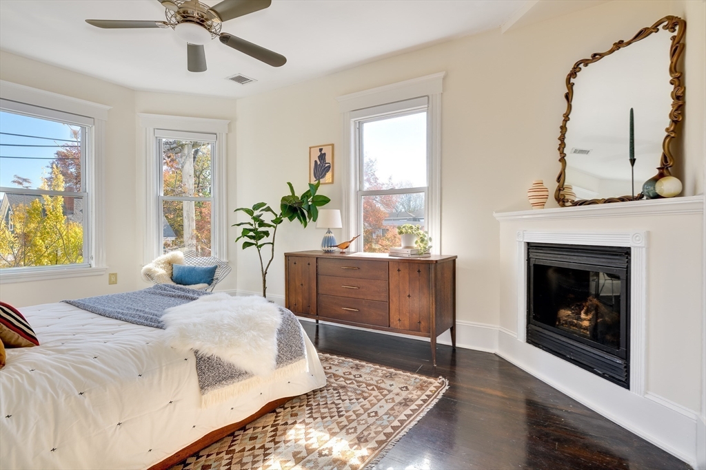 Welcome to The Port. High among the trees in one of Cambridge’s coolest pockets, this three-bedroom, top-floor condo doesn’t just sit pretty — it lives. Sunlight floods through walls of glass while the city hums below, giving the whole place an easy, unfiltered vibe. The open layout moves like conversation — a gas fireplace flickers, laughter bounces off high ceilings, and music spills from the kitchen. Granite counters, custom cabinets, stainless steel, and a gas range anchor an island built for food, friends, and a little chaos. The primary suite brings the calm — soaking tub, glass shower, and a walk-in closet ready for anything. One of the other two bedrooms, bathed in warm ochre light, makes a perfect studio or think space. Two fireplaces, central air, in-unit laundry — the good stuff. Expansive, single-level living like this is rare in Cambridge. Add low HOA fees and a short stroll to Kendall and Central Squares, and you’ve got treetop peace with street-level swagger!