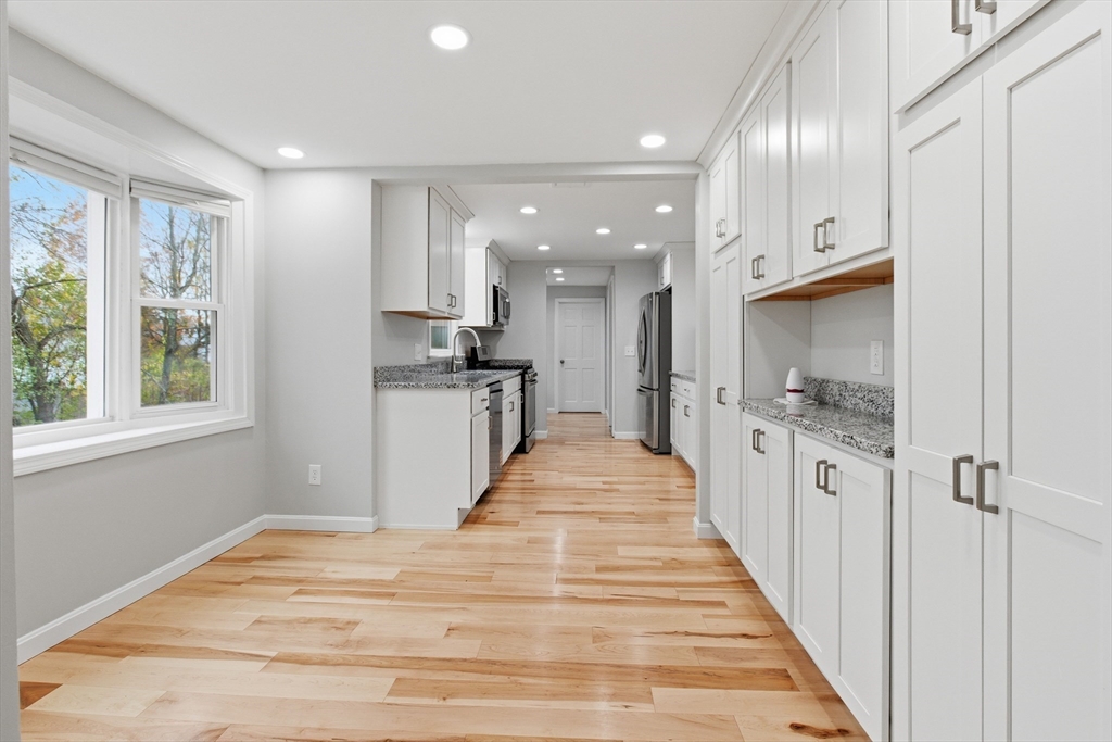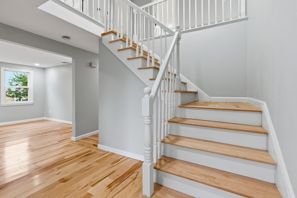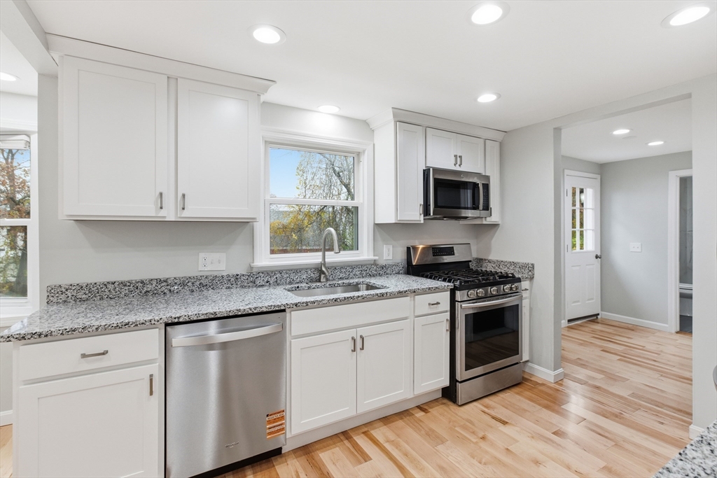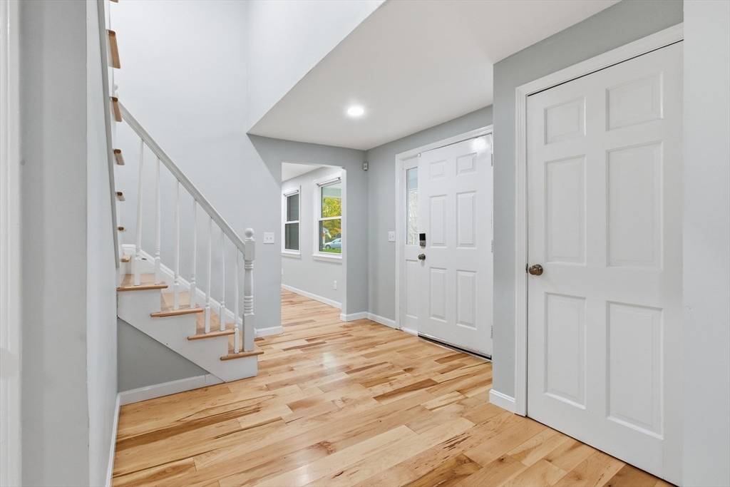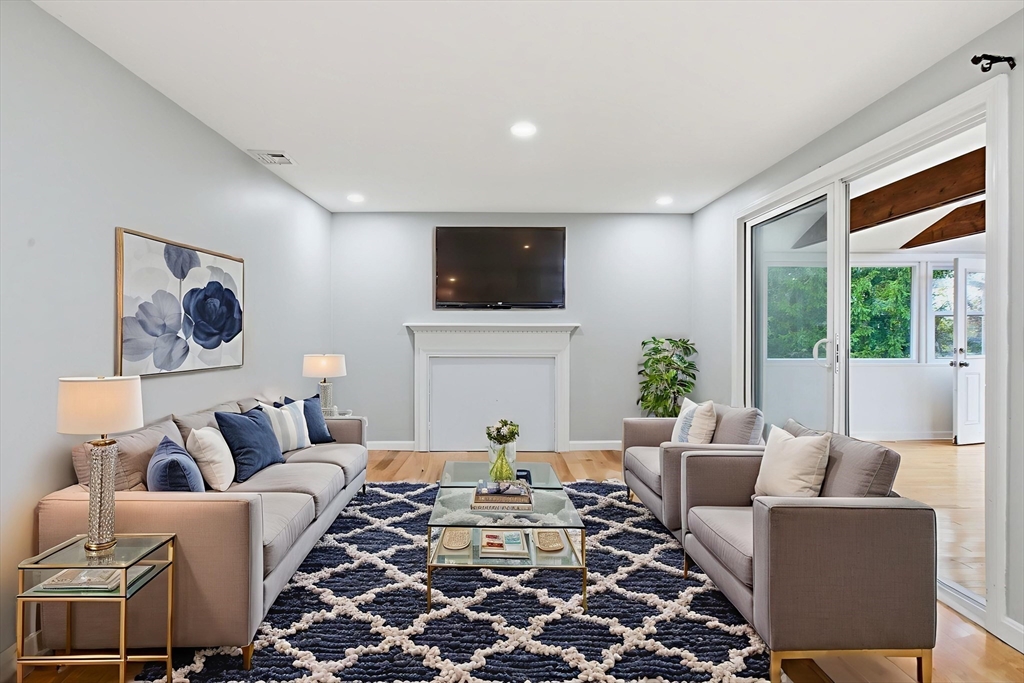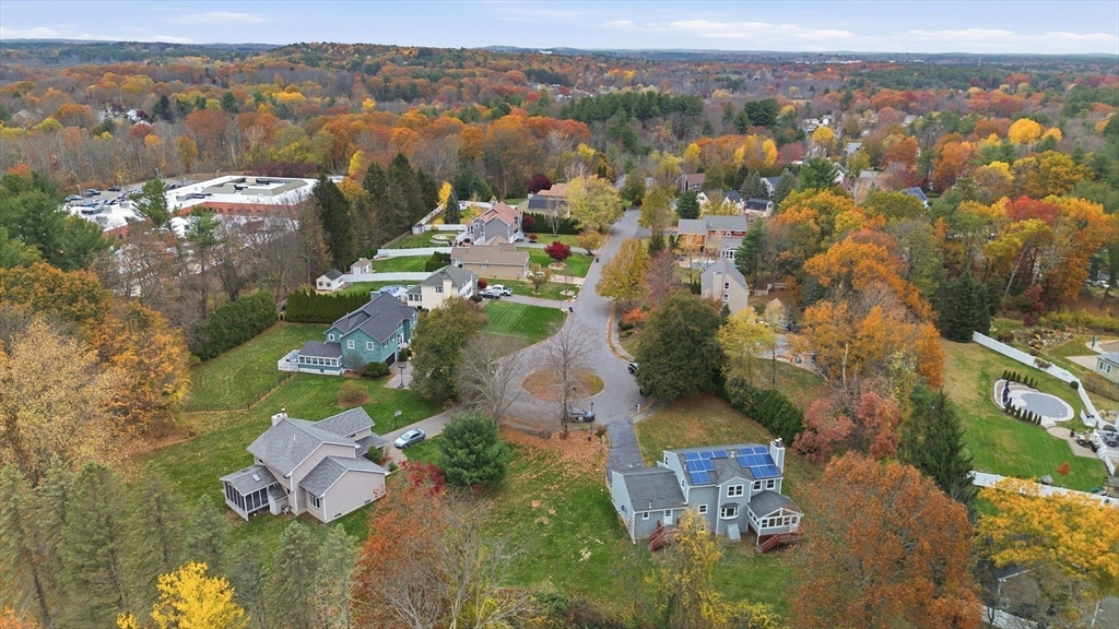 1 Bridle Path Lane is a 4 bedroom, 3 bath Colonial tucked away on a quiet Methuen cul-de-sac. This move in ready home features a bright and functional layout with hardwood floors, recessed lighting, and an abundance of natural light. The main level offers a spacious living room, dining room, family room with fireplace, and a modern kitchen with granite countertops, stainless steel appliances, and a breakfast nook leading to a screened porch and deck overlooking the private backyard. Upstairs are four bedrooms including a primary suite with walk-in closet and private bath. The lower level offers a finished basement with a large recreation room and additional storage space. Additional highlights include central air, solar panels, and a two car attached garage. Set on a landscaped half acre lot with wooded privacy, just minutes to The Loop, Route 93, and local schools.