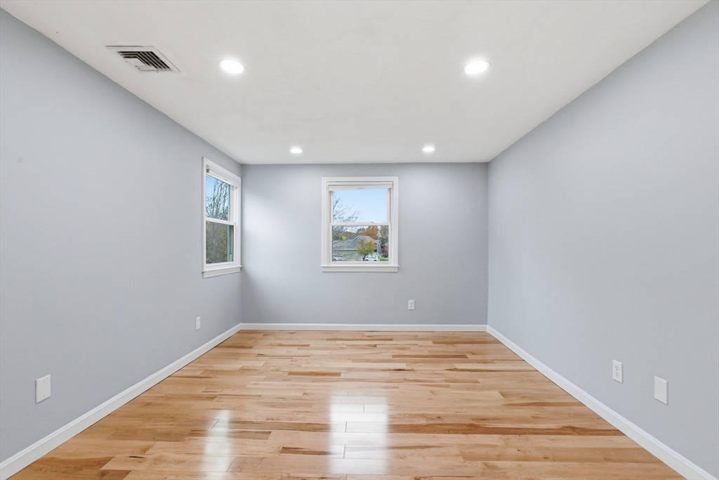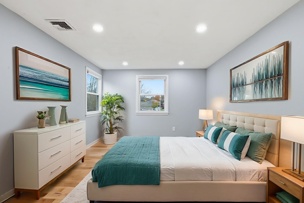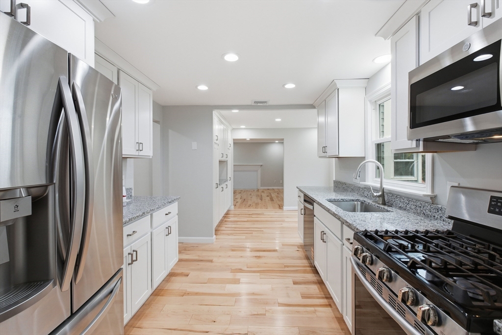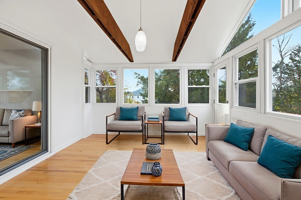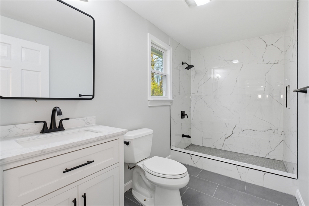 1 Bridle Path Lane is a 4 bedroom, 3 bath Colonial tucked away on a quiet Methuen cul-de-sac. This move in ready home features a bright and functional layout with hardwood floors, recessed lighting, and an abundance of natural light. The main level offers a spacious living room, dining room, family room with fireplace, and a modern kitchen with granite countertops, stainless steel appliances, and a breakfast nook leading to a screened porch and deck overlooking the private backyard. Upstairs are four bedrooms including a primary suite with walk-in closet and private bath. The lower level offers a finished basement with a large recreation room and additional storage space. Additional highlights include central air, solar panels, and a two car attached garage. Set on a landscaped half acre lot with wooded privacy, just minutes to The Loop, Route 93, and local schools.