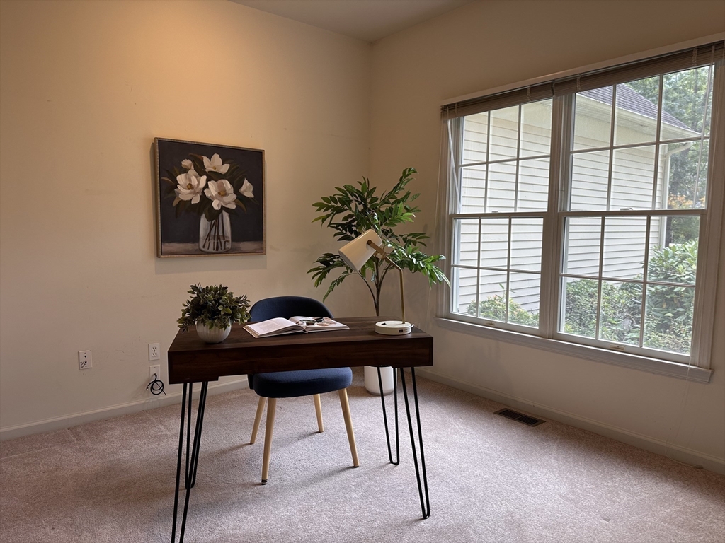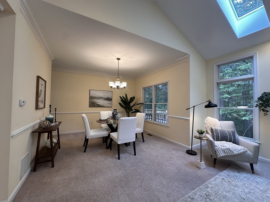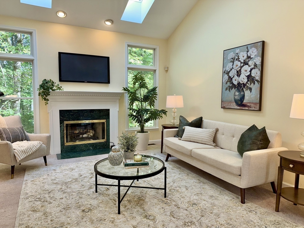 Enjoy the best of single-level living at the best value in this bright and inviting home - designed for both comfort and ease. The vaulted living room with skylights and a fireplace creates a warm open feel while the spacious eat-in kitchen with center island flows to a formal dining room—perfect for entertaining. A sunroom and first-floor office provide flexible living options. The main level offers two bedrooms, including a serene primary suite with dual closets and private bath. The finished lower level adds a full bath, bonus room, and generous storage space. Surrounded by natural beauty, residents of Huckins Farm enjoy access to horse paddocks, pool, tennis courts, fitness center, and walking trails. Rarely does a home in this community offer so much at such an incredible price—don’t miss this opportunity.