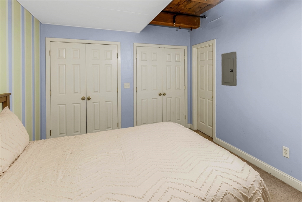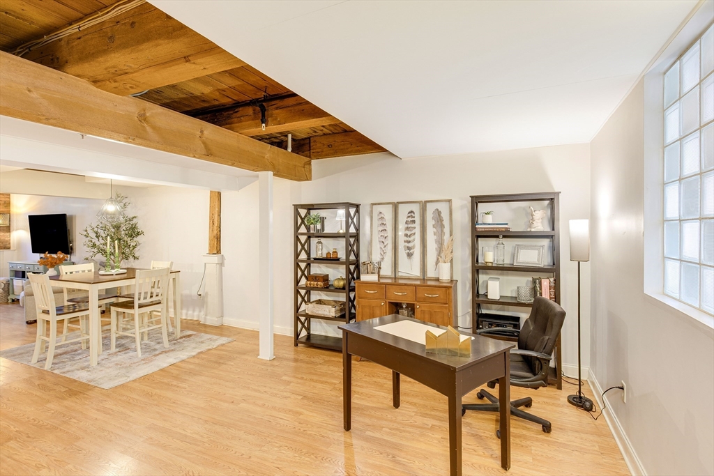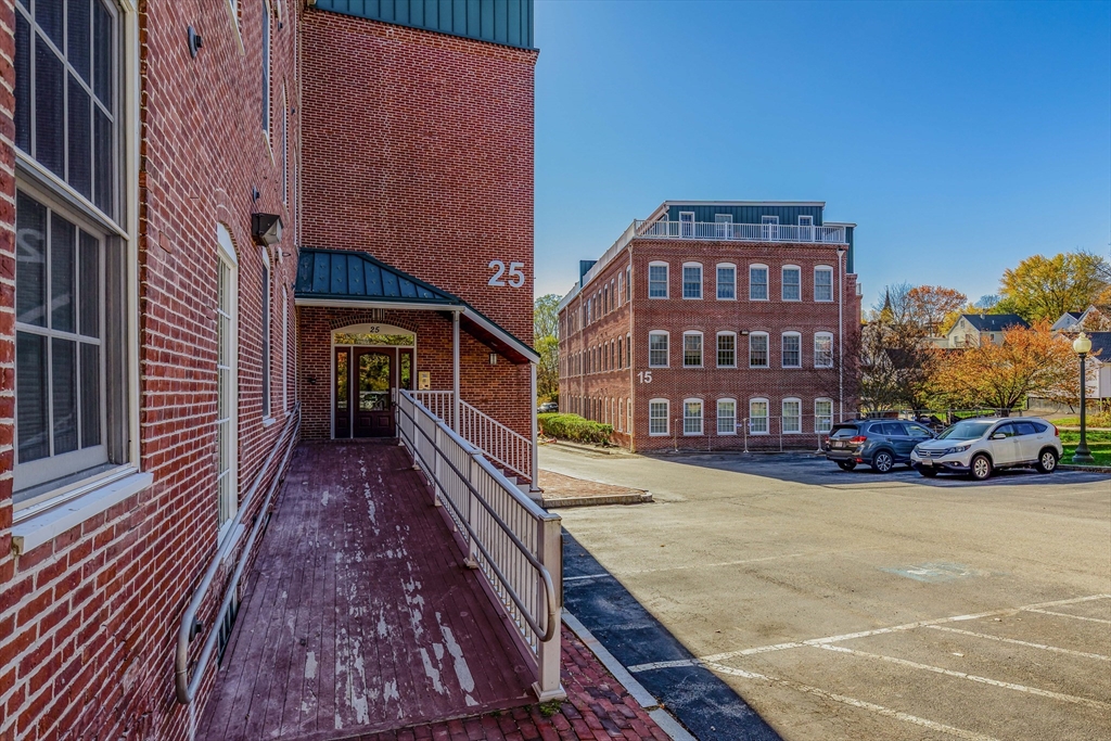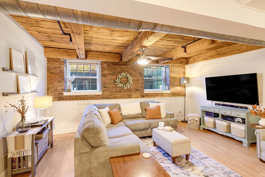 Charming verstile condominium in great condition. Featuring a spacious open floor plan with kitchen island thats perfect for entertaining or casual dining. Exposed beams throughout give it a vintage charm while keeping a warm and inviting atmosphere. Big bedroom with double closet, large bathroom and in unit laundry. This unit has a second room off the main living area that can be used as a bedroom or office. Natural gas heat and Central air. Move in ready in fantastic location, walking distance from all that downtown Amesbury offers; shops, dining, bike paths, trails, Cedar Hill Farm and only a few miles to routes 95 and 495. There is an elevator, extra storage area and terrific outdoor common space with grills, gazebo and Clarks Pond. Move in condition with the special assessment paid in full by seller. Come See! Open Houses on Saturday Nov. 8th and Sunday Nov. 9th from 12-1:30pm.