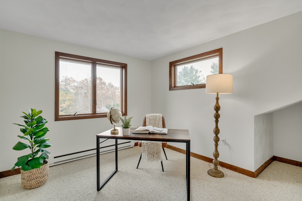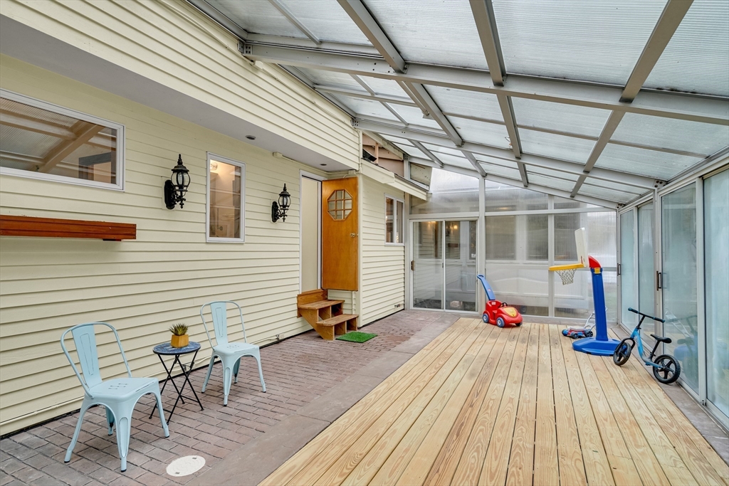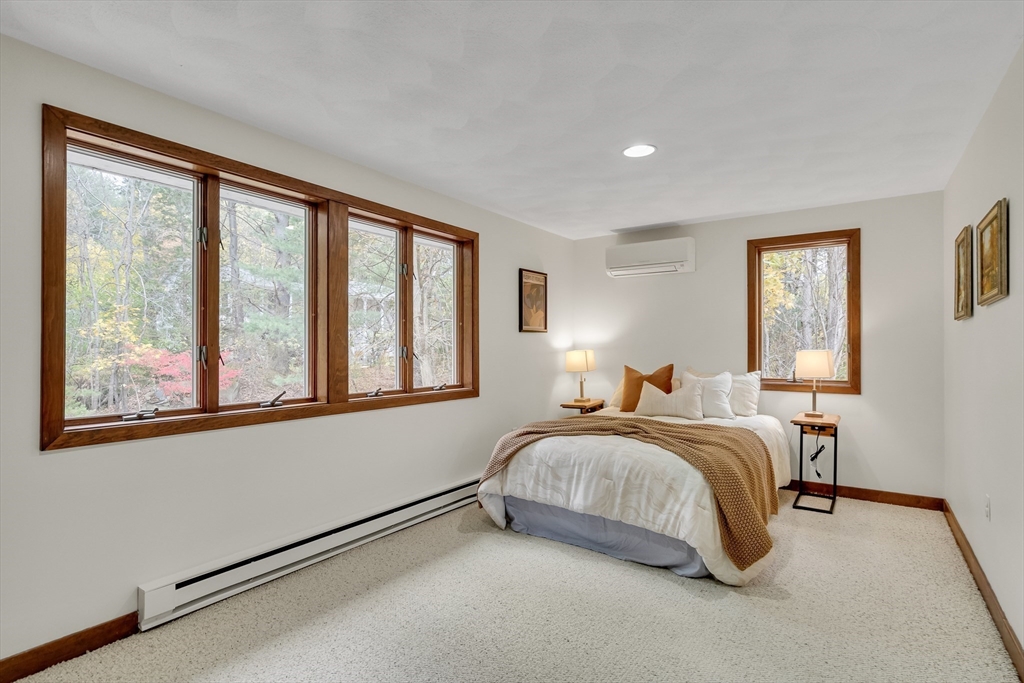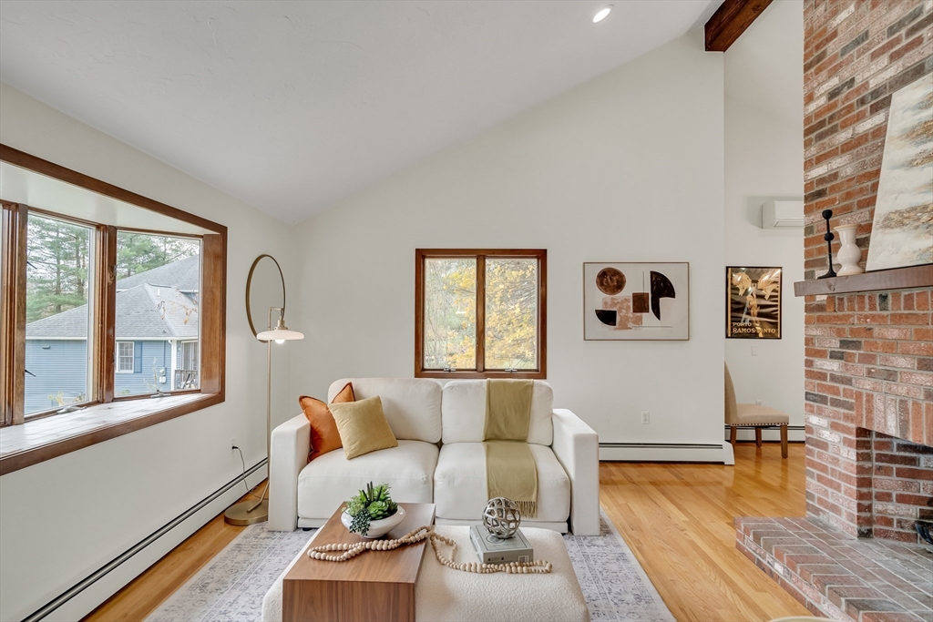 Located in a highly desirable neighborhood, this rarely expanded 6BR, 3.5BA home offers exceptional flexibility for living : office, gym, studio, or guest space. Energy-efficient features include a newer Buderus boiler, 6 Mitsubishi mini splits, solar panels, and an EV charger. The sun-filled living room boasts a bay window, cathedral ceiling, centered around a double-sided brick fireplace with a built-in BBQ smoker connecting to the unique featured chef’s kitchen. The dining room opens to an enclosed sunroom and a separate entrance to versatile solarium/play area for year-round fun. The main level includes a primary suite plus two additional bedrooms, while the upper level offers three more bedrooms. The lower-level family room features daylight windows, a fireplace, play area and a half bath/laundry area. Step outside to a tranquil Japanese garden for retreat. Walk to Davis Elementary; Just minutes from Middle/High School, Town Center for shops and restaurants. Short drive to Boston.