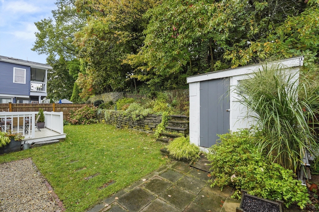 Set on a quiet street, this beautifully maintained mid-century Colonial blends classic charm with thoughtful updates—ideal for modern family living. The main level features a sun-filled living room with sliders to the deck and fenced yard. The updated kitchen opens to the dining room, with hardwood floors throughout. A side-entry mudroom keeps daily life organized. Upstairs, the spacious primary bedroom spans front to back, joined by two additional bedrooms and a full bath. The finished lower level offers flexible space for a family room, office, or guest suite, with a full bathroom and storage. Outside, perennial gardens, patio, and deck create a three-season retreat. Vinyl siding, off-street parking, and a shed add low-maintenance appeal. Just a mile to Hyde Park and Fairmount commuter rail, with bus service to Forest Hills and Roslindale Square. Recent updates include renovated kitchen and baths, gas heating, central air, and insulation—modern comfort in a hidden gem neighborhood.