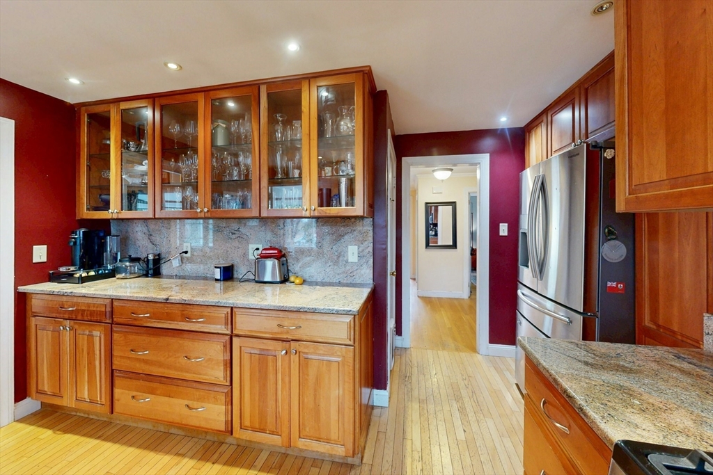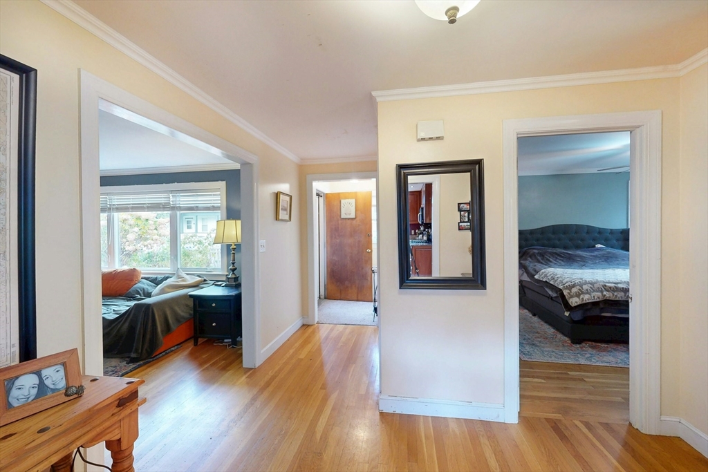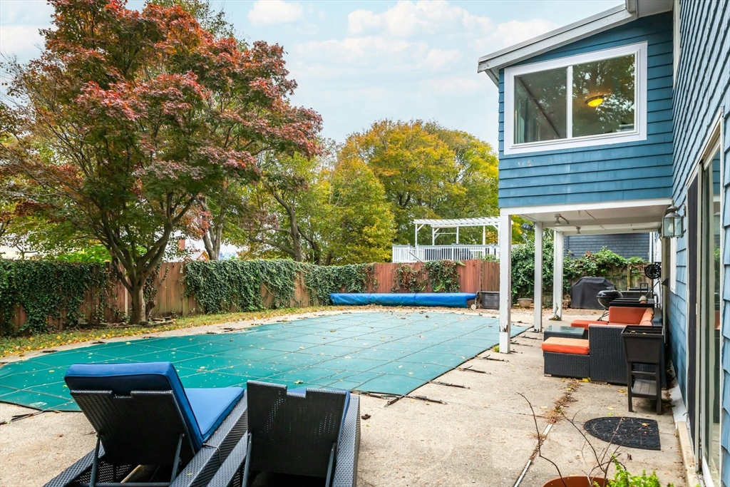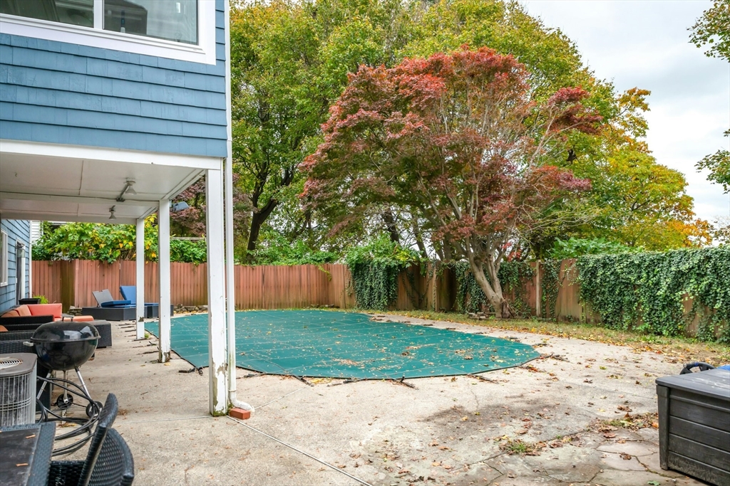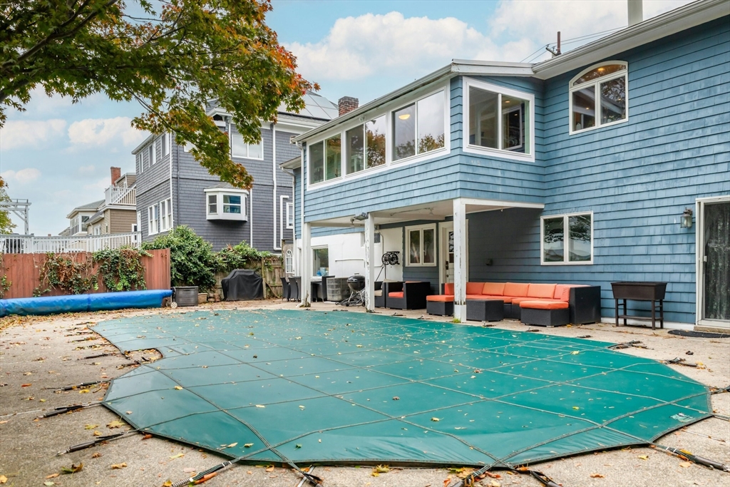 Lovely custom built ranch offering endless possibilities! Perfect for multi-generational living or added income with a fully equipped lower level apartment. The main floor features a cherry wood kitchen with granite countertops, a spacious fireplace living room, tiled bath with separate shower and tub, generous bedrooms, den, and a bright sunroom with ocean views. Enjoy central air and an attached garage. The lower level includes a kitchen, family room with sliders to a private yard and in-ground pool, two bedrooms, and a bath. Garage and mudroom could be converted into an ideal ADU for extra income or extended family. Fantastic location public transportation at one end of the street and beach access at the other!