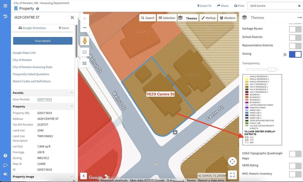 Prime Newton Highlands Village land offering just steps to the D-line MBTA. Existing two-family structure with detached two-car garage and abundant on-site parking. Situated in the newly rezoned VC2 Village Center Overlay, a district designed to enable more housing near transit and amenities. Potential for a large building footprint, reduced front/side setbacks, and multi-story massing (up to 3.5 story) consistent with VC2 standards. Buyer to perform all due diligence regarding allowable density, parking ratios, inclusionary requirements, utilities, and permitting. Exceptional walkable location near cafés, restaurants, parks, Crystal Lake and easy access to Longwood Medical, and Routes 9/128/90.