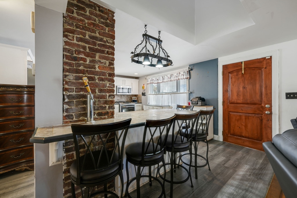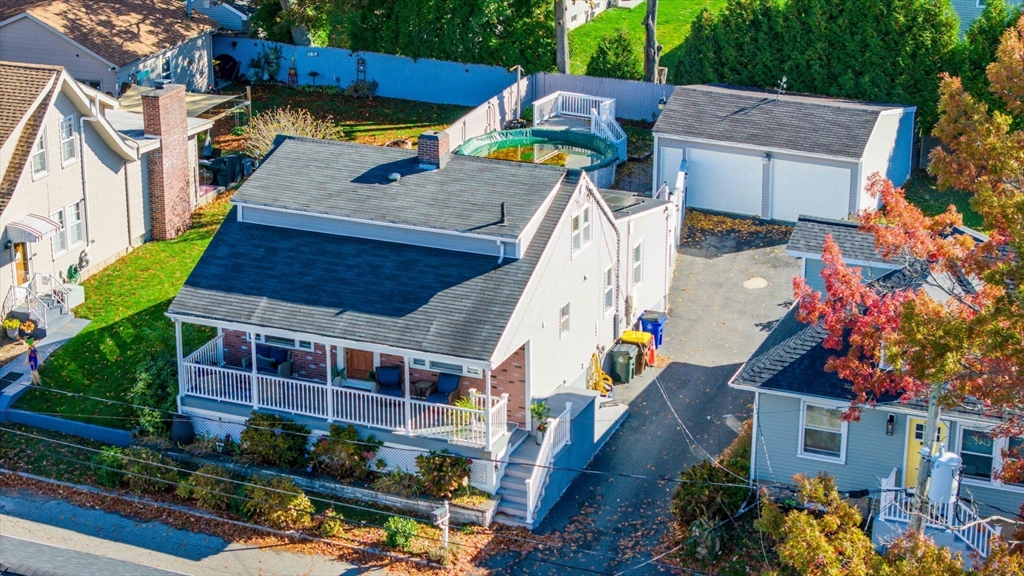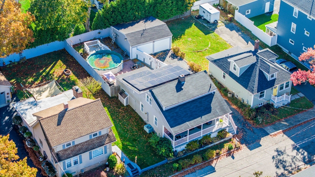 Welcome to this oversized Cape where your home can become an oasis indoor and out. Entering through the farmers porch where you can rest and relax, this 3-bedroom, 1.5-bath home has endless features. The open floor plan boast an adundance of natural light stretching between the spacious kitchen, formal dining area, and cozy sitting room. The sunken living room boasts a fireplace at its center, sliders to a private patio, fire pit, grilling area and a heated pool only a few years old. The first-floor primary bedroom provides convenience, while two additional bedrooms are upstairs. During the summertime you can enjoy the private yard or stay cool inside with central AC. Equipped with solar panels and pellet stove for energy savings all year long. The partially finished basement adds a half bath and bonus room, perfect for a home office or gym. A two-car garage completes this beautiful property designed for modern living and effortless entertaining.