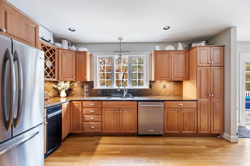 Stunning Custom Colonial nestled in a serene, tree-lined neighborhood. This exceptional 4-bed, 3.5-bath home offers 4,400 sf of meticulously designed living space on a private 1.4 acre lot. The kitchen is equipped w/granite countertops, stainless appliances incl. double wall ovens, sit-around peninsula & breakfast area making it perfect for both everyday meals & entertaining, plus separate dining room ideal for hosting gatherings. Expansive Great room w/beautiful windows & fireplace, formal living room, office & half bath complete the 1st floor. Generous primary suite incl. walk-in closets, bath w/separate shower & jacuzzi tub. 3 add. large bedrooms & full bath as well as laundry on 2nd level. The walkout lower level incl. 1220 sf of finished space with the flexibility of in-law or guest quarters, home office & gym. The picturesque lot is surrounded in natural beauty w/mature plantings abound. This centrally located gem has been lovingly maintained.