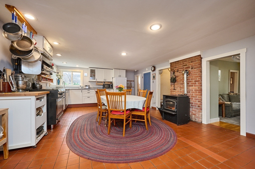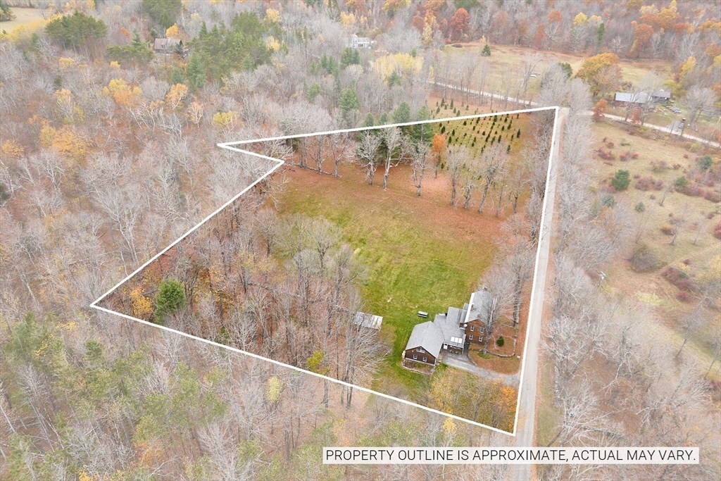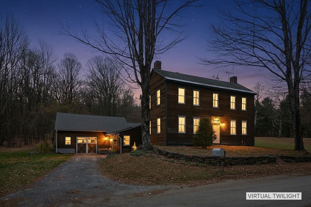 Charming c.1825 Colonial-style home perfectly situated on a quiet country lane lined with majestic old maple trees, offering the quintessential New England homestead setting. This picturesque property rests on 3.75 mostly open acres, idea for gardening and animals or to continue the “Cut Your Own” Christmas Tree family tradition. The lovingly maintained home, updated over the years, offers a warm and comfortable living environment featuring four decorative fireplaces, nice woodwork and beautiful wood floors. The spacious eat-in kitchen includes a Garland gas cooking range, ample cabinetry, and a pellet stove for added warmth. The first floor also offers a living room, dining room, full bath, laundry, and an entry area currently used as an office. Upstairs, there are three bedrooms, full bath, and a walk-up attic. Relax on cozy back porch or deck that overlooks the backyard. Attached is a large workshop ideal for hobbyist and1 car garage with storage. Welcome home to country living!