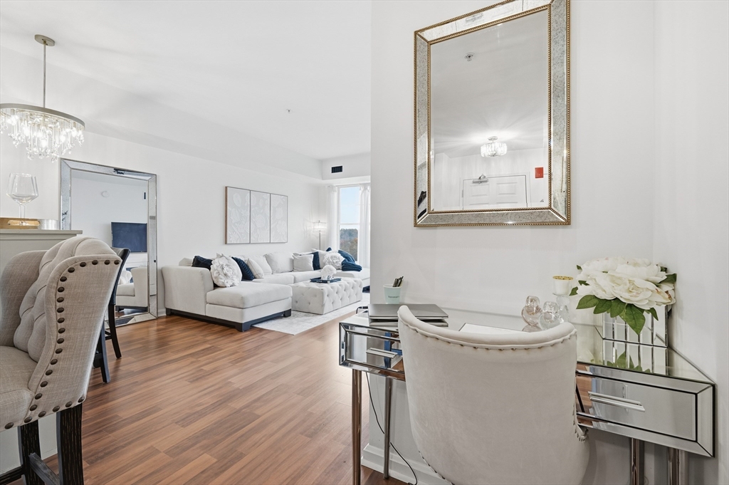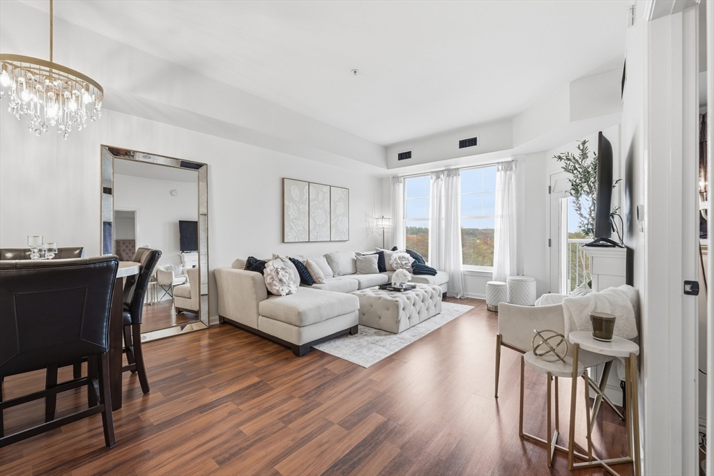 Embrace resort-style living at Ironwood on the Green. Elegantly appointed 1BR, 1BTH luxury residence. The open layout features 12’ ceilings, in-unit laundry, and a sun-drenched dining/living area with a slider leading to a private balcony showcasing views of the Ferncroft Golf Course. The functional kitchen offers stainless steel appliances, granite countertops, a large pantry, and a charming breakfast nook. The spacious bedroom boasts an oversized walk-in closet, while designer décor and elegant finishes create a warm, sophisticated ambiance. Enjoy premier amenities including a heated saltwater pool, jacuzzi, fitness center, library, function room, and secure building entrance with on-site management. Includes garage space #66 plus guest parking. Pet-friendly and ideally located near Routes 1 and I-95, this exclusive community offers the perfect blend of luxury, leisure, and location.