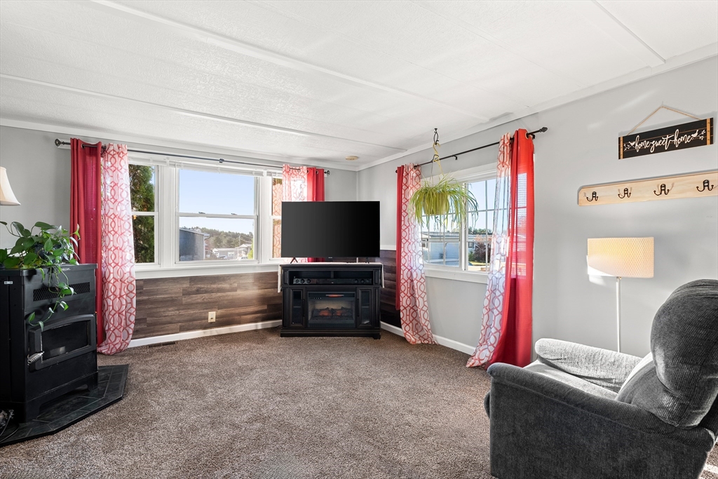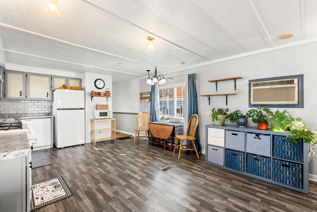 Superb and affordable living at Pine Hill Estates! Nestled in desirable Raynham, this 55+ resident-owned community offers comfort, convenience, and charm. This well-maintained single-wide home enjoys abundant natural light and an easy single-level layout featuring an open concept Living Room and Eat-In Kitchen—perfect for relaxed everyday living. Step out to the spacious wooden deck to enjoy peaceful outdoor moments. Recent updates include a new roof, most windows, hot water heater, countertops, refurbished cabinets, baseboard trim, bathroom vanity, plumbing improvements, propane stove, and more. A wonderful opportunity to own in Pine Hill Estates!