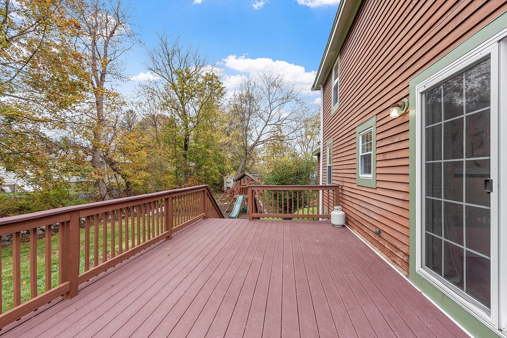 Delightful 3-bedroom, 2-bath home offers the perfect blend of comfort and convenience, nestled on a peaceful dead-end street that ensures privacy and tranquility. As you step into the home you're greeted with a large open living room. As you head towards the kitchen you'll find the dining area, full bath, laundry and sliders to the spacious back deck and yard. The partially finished basement adds versatility to the home, offering additional storage, utilities, a playroom, or the perfect spot for a home gym. On the 2nd floor you'll find 3 bedrooms. The front to back primary offers direct access to the full bath, while the other two bedroom enjoy views overlooking the backyard. Outside you'll find a yard that invites outdoor enjoyment. Whether you're relaxing on the deck, enjoying a bbq with friends, or doing some gardening, this yard is your own oasis. Location is key. Just a short distance to town beach & elementary school. Plus, easy access to major routes, town common & shopping!