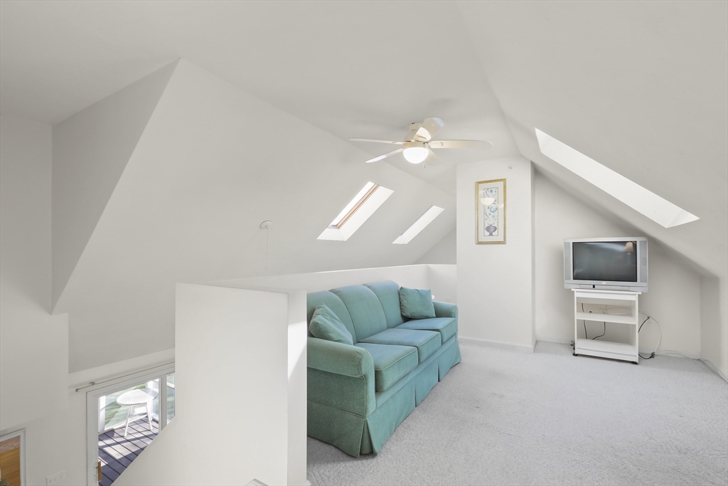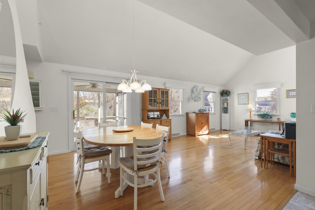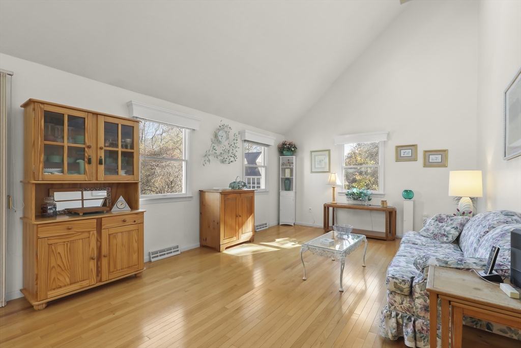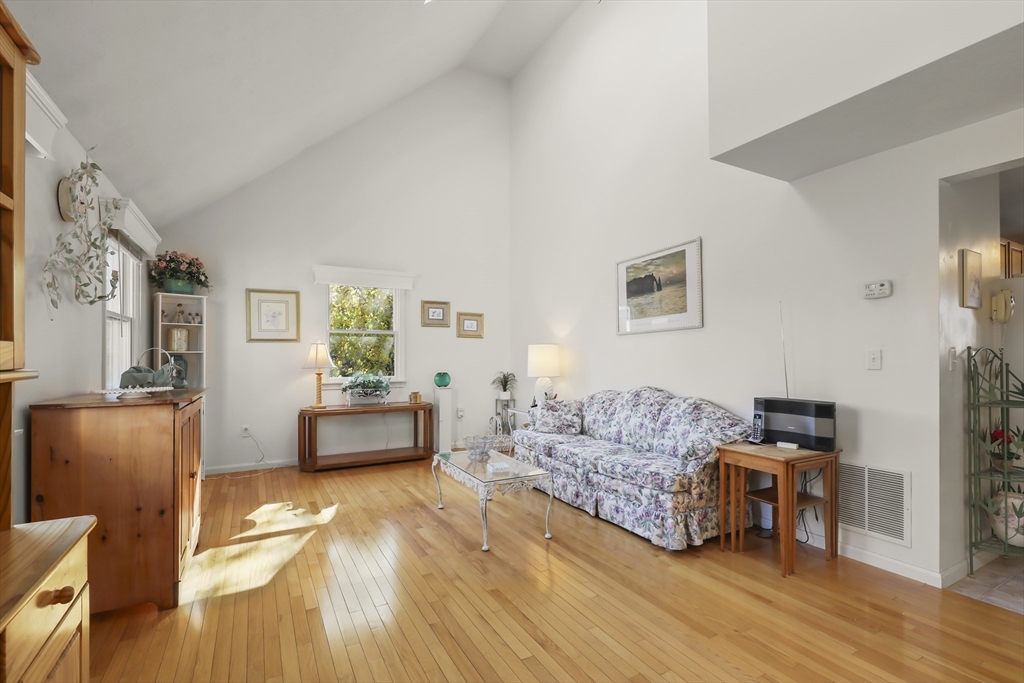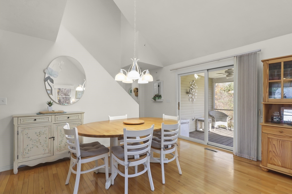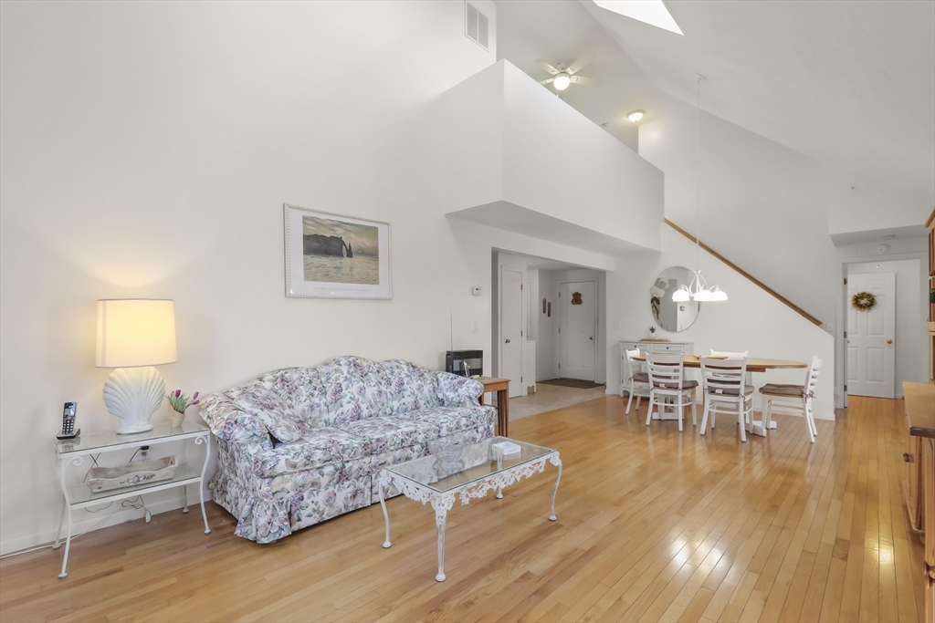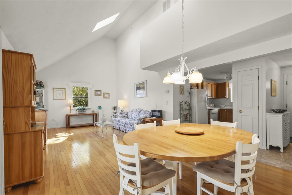 Welcome to the desirable Courtland Estates! This well-maintained condominium blends modern design with everyday comfort. The main living area features skylights, vaulted ceilings, and gleaming hardwood floors, creating a bright and inviting atmosphere. The open-concept layout seamlessly connects the living and dining areas, perfect for entertaining. The kitchen offers ample cabinetry and a functional U-shaped layout, providing excellent storage and workspace. The first floor also includes a spacious bedroom with a walk in closet and bathroom with convenient laundry. Upstairs, a versatile open landing overlooks the main level and leads to a generous sized bedroom and bathroom, offering comfort and privacy. Additional highlights include an enclosed three-season room, attached one-car garage, and an unfinished walk-out basement with high ceilings, ideal for storage or potential future expansion. Don’t miss this opportunity!