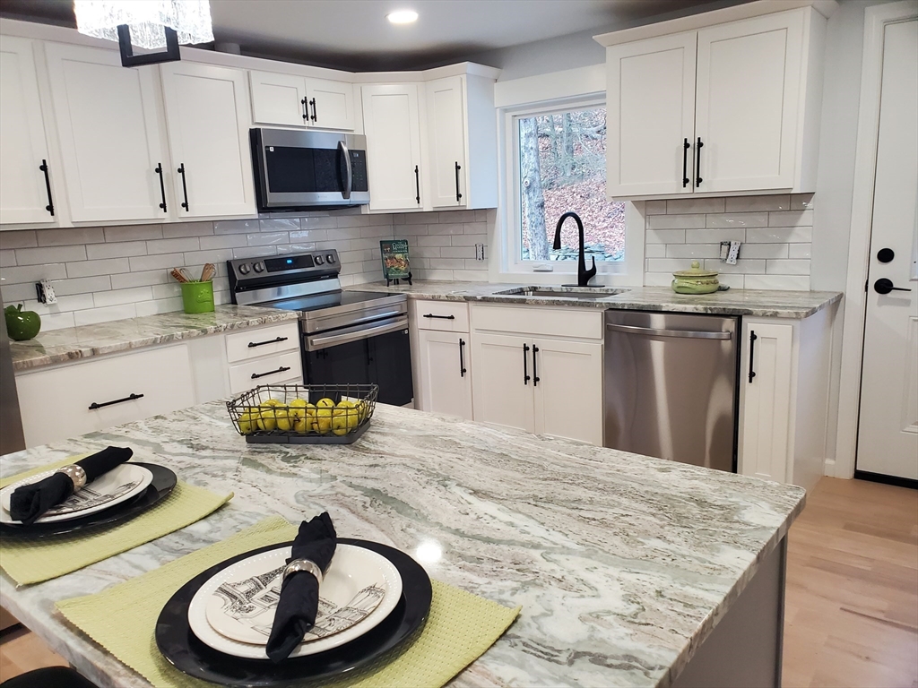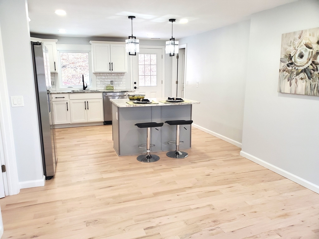 Welcome to 143 James St. This ranch style home has been renovated and redesigned to perfection. Take a look at this beautiful home in a desired location with so much to offer with a living room that sports a fireplace, a brand new kitchen with solid countertops center island and stainless appliances, dining room perfect for entertaining, all new hardwood floors through out stained to a perfect color that is light and bright, 4 bedrooms and 2 full baths. This home also boasts a full renovated finished basement for more living space, new forced air furnace and central air, new windows, doors lights bathrooms and trex deck off of kitchen. So many new things have been done to mention. Make an appointment to view. You won't be disappointed.