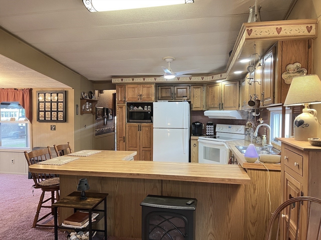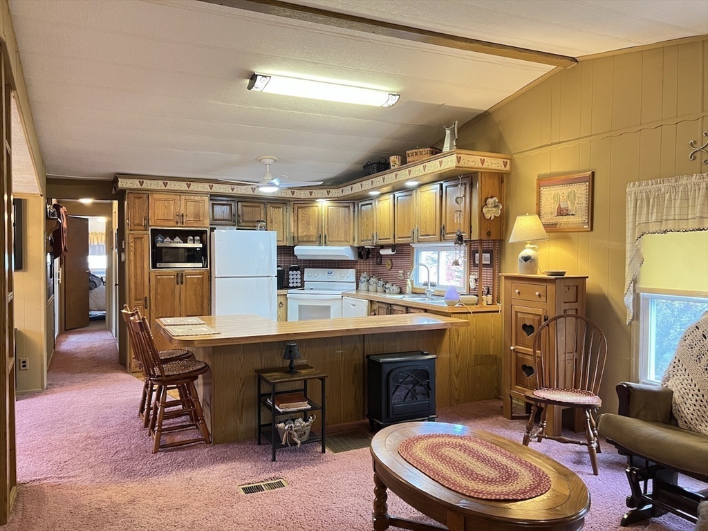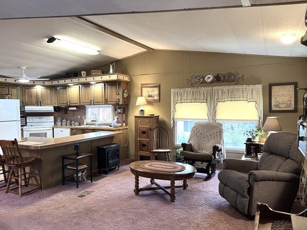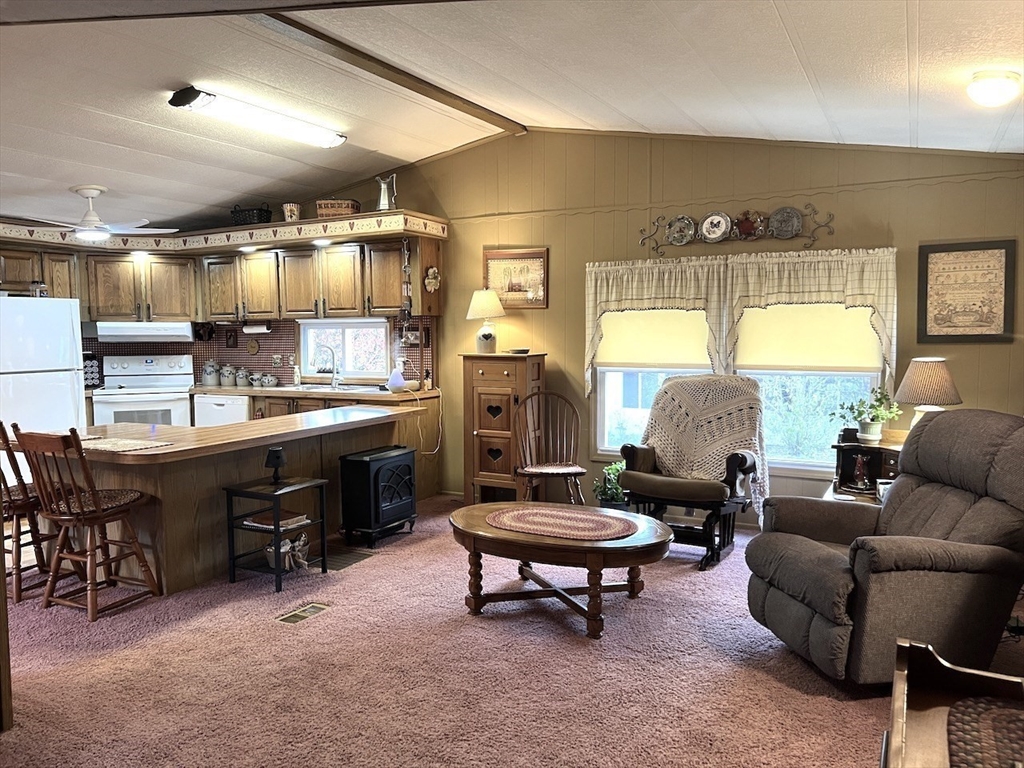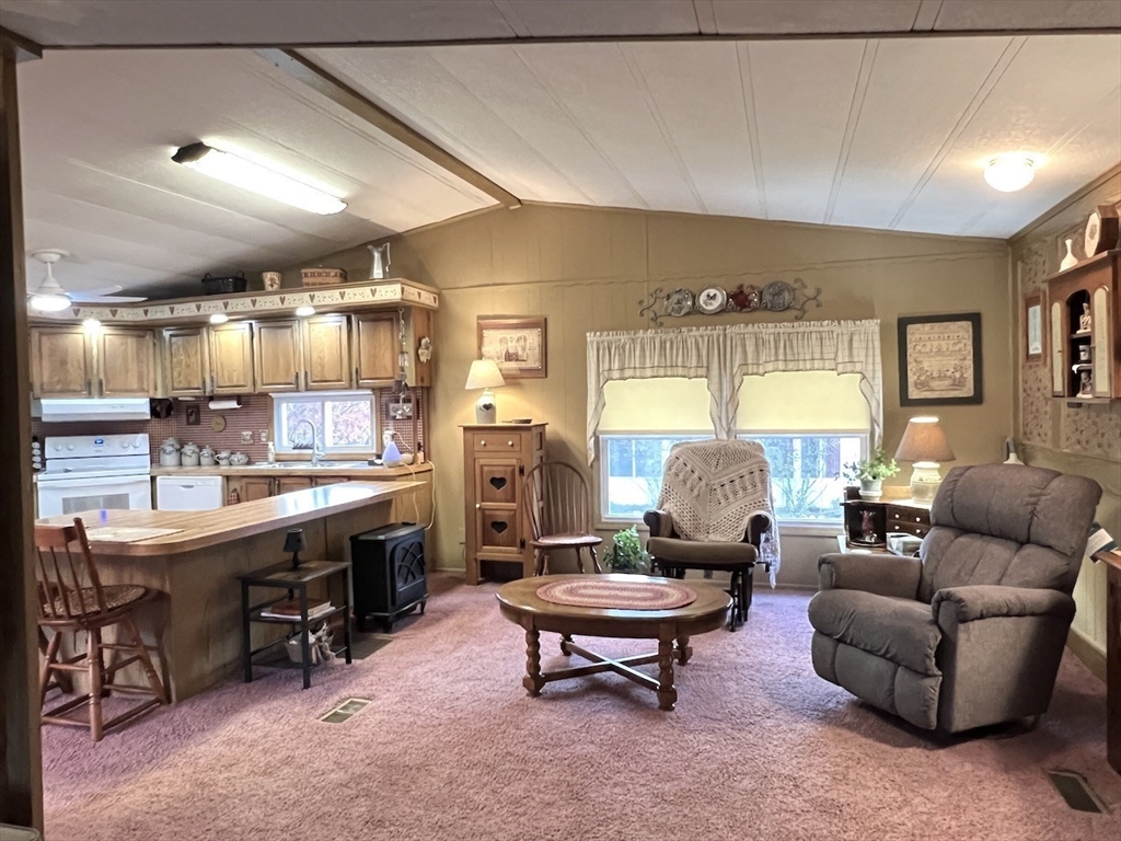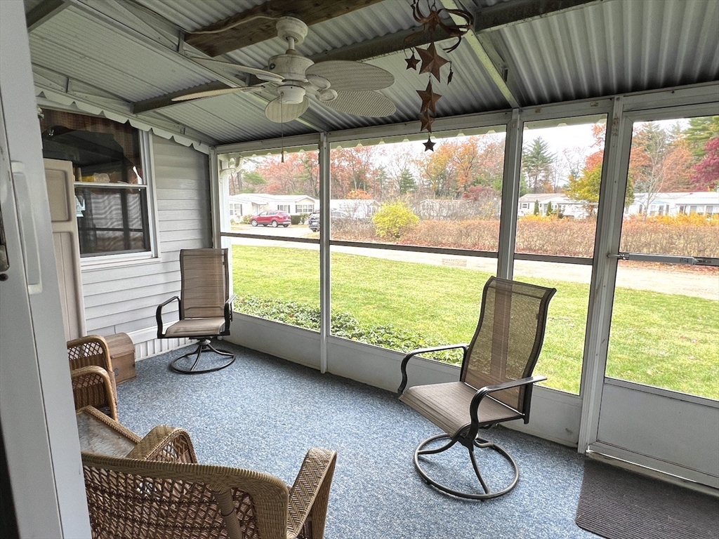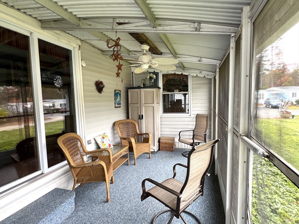 Attention Seniors looking for single floor affordable living in a community of like minded neighbors! Don't miss this opportunity to own a two bedroom, two FULL bath home at Hampden Village! This is one of those unique offerings that only comes along once in a great while! This home is described a 14X70 single wide...BUT, it also has a 9X21 build out in the center of the home that makes it feel like a double wide! This home features a beautiful open floor plan between the living, dining and kitchen areas! If you enjoy entertaining, this is the home for you! This home also boasts two spacious bedrooms, each with their own FULLY remodeled bath! The three season enclosed porch is pure bonus to all the living space this home has to offer! Please note: Hampden Village is a 55+ community of well kept manufactured homes. Buyer is responsible for obtaining park approval. Lot fee on this home is 449/month and includes water, taxes, trash and use of community amenities.