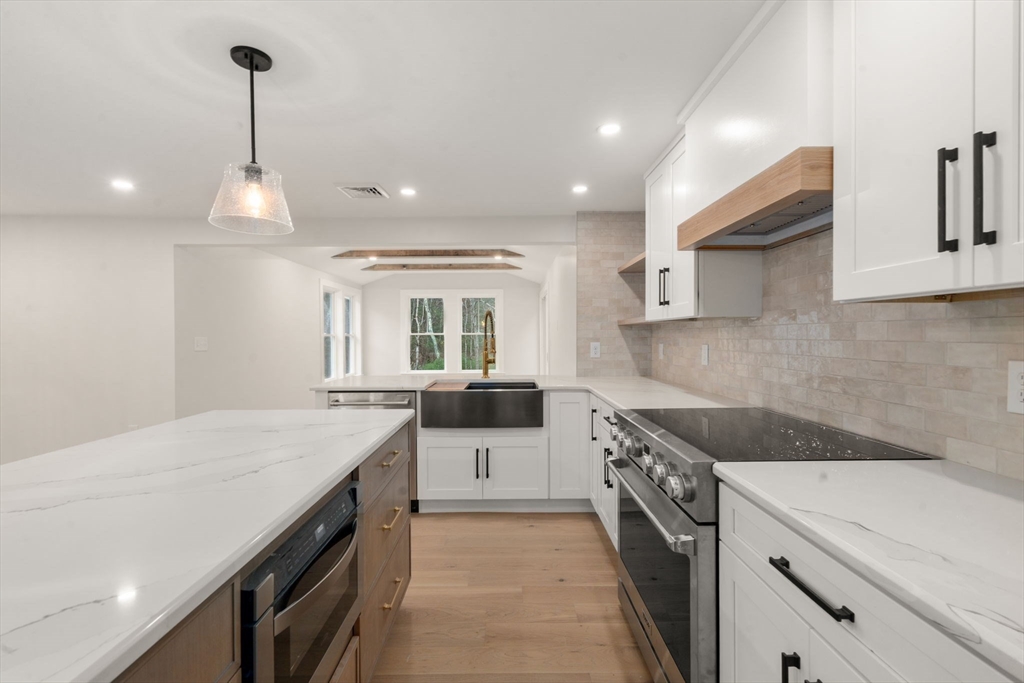 Experience the perfect blend of New England charm and modern luxury in this completely renovated home set across from the rolling fields of O’Neil Farm in Duxbury. This home was completely reimagined from top to bottom with multiple new additions poured, creating a stunning 4 bed, 2.5-bath home. It features high-end craftsmanship, an open floor plan, and designer finishes throughout. The custom chef's kitchen has premium appliances and a large island that opens seamlessly to the living and dining areas, ideal for everyday living and entertaining. The spacious primary suite includes a spa-like bath and walk-in closet, while 3 additional bedrooms offer versatility for guests or office space. The finished lower level has a quiet home office with large windows overlooking the yard. Set on a flat .92 acre lot with relaxing views of the Farm makes this home feel like a retreat, yet you have easy access to everything Duxbury offers. This home perfectly unites relaxation and luxury!