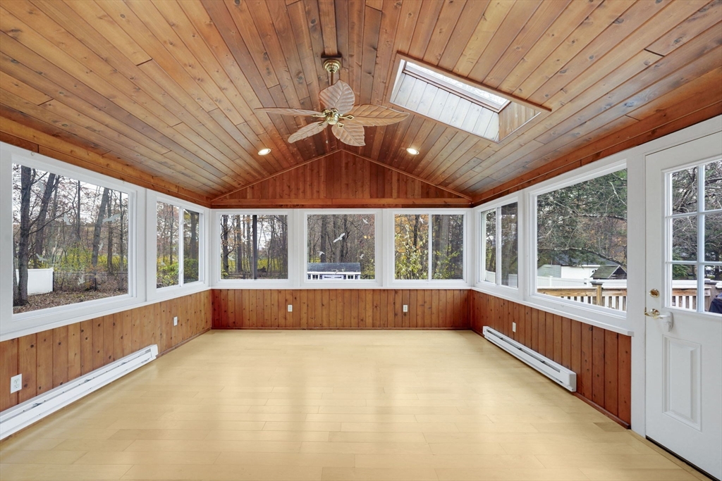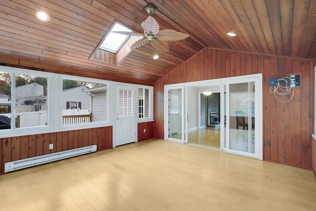 Welcome to this charming ranch-style home! Offering 3 bedrooms and 1.5 bathrooms, this beautifully updated home provides the convenience of one-floor living paired with modern comfort and style. Step inside to find a bright and open layout with hardwood flooring throughout. The primary bedroom features its own private half bath and a spacious walk-in closet. The heart of the home is the stunning heated sunroom right off the kitchen, boasting vaulted ceilings and abundant natural light...perfect for morning coffee, relaxing evenings, or year-round entertaining. Enjoy the outdoors in your fully fenced-in backyard complete with a brand-new deck, offering the perfect space for gatherings, grilling, and unwinding in privacy. The attached 2-car garage includes a brand-new garage door for convenience and peace of mind. The basement includes a partially finished bonus room with incredible potential to finish remainder and add even more living space! Schedule your showing today.