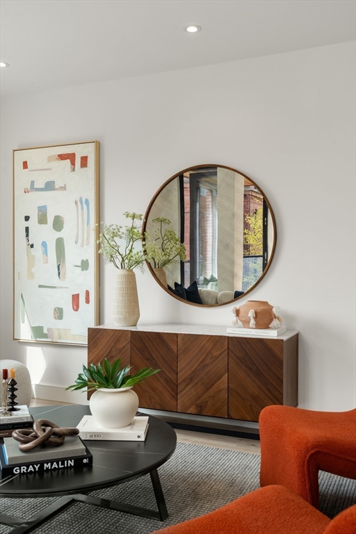 Newly completed & ready for occupancy! The Residences at 595 Albany, a collection of 10 meticulously appointed homes in Boston's South End. This stunning residence offers direct elevator access into approx. 1,048sf of open living space, 2 bedrooms, 2 bathrooms, a private balcony w/ trifold doors & exquisite attention to detail ensuring optimal proportions & flow. Large oversized windows flood this home w/ an abundance of natural light, highlighting the hardwood flooring & premium finishes throughout including a custom three-tone kitchen w/ top-of-the-line, integrated appliances & Calacatta stone countertops. En-suite to the primary bed, a luxurious, spa-inspired bathroom w/ a custom double sink vanity. Residents enjoy an exquisitely designed lobby with secured smart-access technology, package storage, and a common roof deck with a gas fire pit and grill, lounge seating and sweeping sunset views of the Back Bay skyline. Perfectly positioned in the SoWa's Art and Design District.