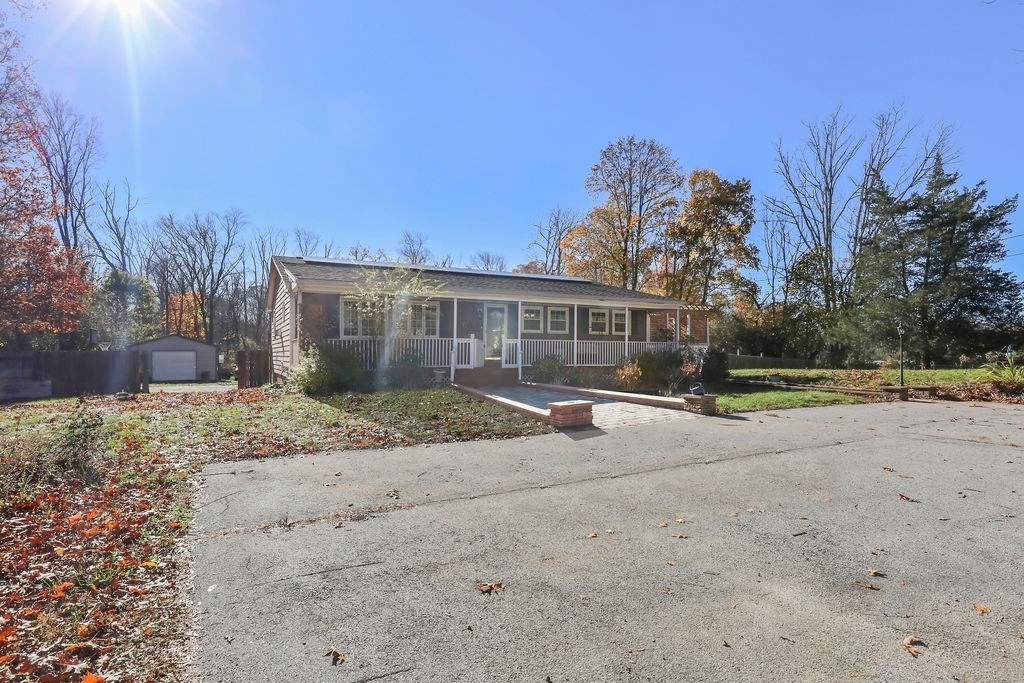 Welcome to this beautifully maintained 3-bedroom, 1-bath ranch offering comfort, updates, and space to enjoy inside and out. The home features a bright, open layout with an updated kitchen and bathroom, creating a fresh and modern feel throughout. Brand new Hardwood floors run through the main level, and the partially finished basement provides extra living space as a family room, home office, and exercise space in addition to storage and a laundry room. A private setting of over 1.5+ acres, as you step outside to a spacious, large flat-yard—ideal for gatherings, gardening, or relaxing in your own private retreat. Updated large garage/shed with concrete padding. Mostly Vinyl Windows. Don’t miss your chance to own this charming property! First Open House Saturday 12:00-2:00 11/8/25