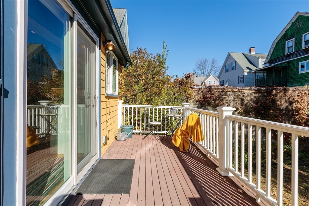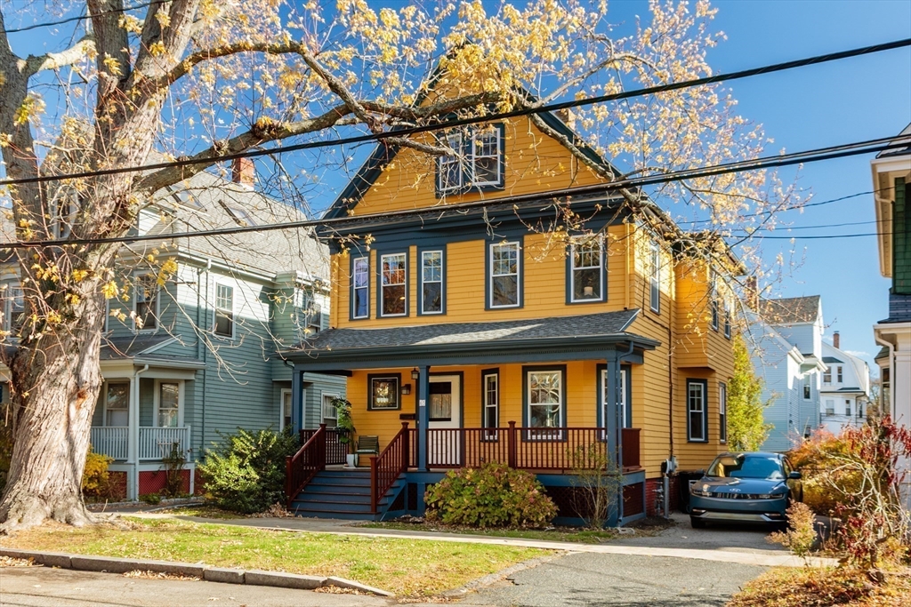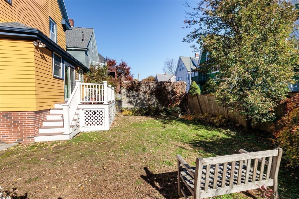 Set on a beloved st w/distinctive landscaping, this renovated home offers 4 bd, 3 ba, AC, stunning original details, wide front porch, rear deck, driveway, and fenced yard. The gracious foyer retains original ornate tin ceiling, bay window w/stained glass, inlaid wood fl, Jack and Jill stair, and French doors to LR. Adjoining DR has built-in china cabinet and inlaid wood fl. The roomy cook's kitchen has brkfst bar, ss appliances, white cabinets, stone counters, skylt, and glass slider to deck and yd. A full bath and separate laundry closet complete the 1st fl. The 2nd fl has 3 sizable bdrms, 1 office, and a full, tiled bath. The entire top fl is a luxurious custom suite w/lg bdrm; dble walk-in closets; and spa-worthy bath w/skylts, clerestory windows, tiled shower, towel warmer, dble sinks, linen closet, and water closet w/pkt dr. Unfin bsmt has ample storage and workspace and dr to yard. Walk to 2 RedLine + 2 GLX stops, bike path, Lex. Park, shops, eateries, theaters, universities.