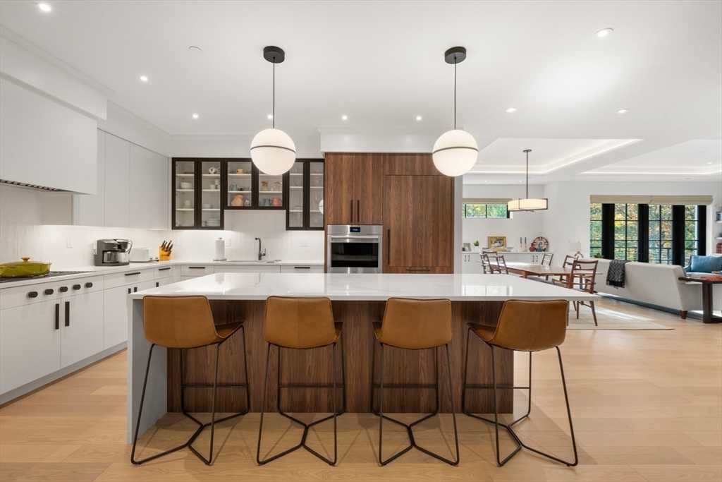 Experience unparalleled luxury living at The Bristol in the heart of Wellesley. 24 unit condo community in concierge building designed for buyers seeking maintenance-free living and every modern convenience. Corner unit boasts 9 ft ceilings and white oak floors. Seating for four at waterfall island. Seamless walnut and glass cabinetry and handmade subway tile backsplash creates a crisp, contemporary aesthetic. Wolff appliance package and Sub Zero completes this designer kitchen perfectly. Generous din area incl built-in banquet storage. LR gas fp offers cozy spot heating instantly. French doors to private deck overlooks town land/trail system. Primary suite is like 5-star boutique hotel. Frameless shower w/bench seating, double vanity w/stone countertop plus water closet and linen storage make this room sing. Bdrm w/fam bath completes the unit's “east wing.” Set-apart den incl barn door to accommodate guest. California Closet systems installed throughout. 8AM to 9PM concierge.