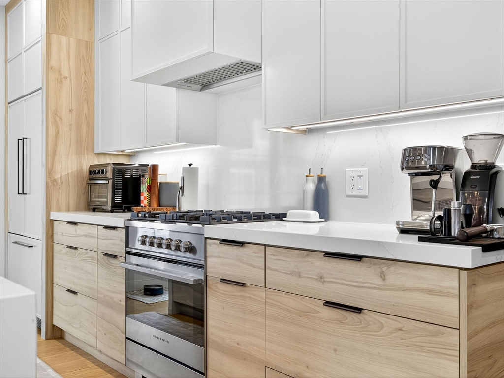 One of Dorchester’s most striking homes, 4 Payne Street offers a fresh, architectural take on city living. Tucked beside a leafy park at the end of a quiet cul-de-sac at the base of Pope’s Hill, these residences blend clean lines with warmth and function. This duplex features a private entry, two decks off the main level, custom built-ins and a sunlit glass-framed study perfect for working or creating. Upstairs, 17’ cathedral ceilings make the bedrooms feel expansive, and the primary suite features a spa-like bath and a next-level walk-in closet. Wide-plank white oak floors in a soft matte finish bring a natural, modern feel throughout. The kitchen shines with paneled Fisher & Paykel appliances, mitered Calacatta Gold waterfall counters and sleek custom millwork. With garage parking, central air, pet-friendly living and proximity to I-93, downtown, McGonagle’s (a New York Times pick), Adams Village and Dorchester’s beaches, this home nails city style, comfort and connection.