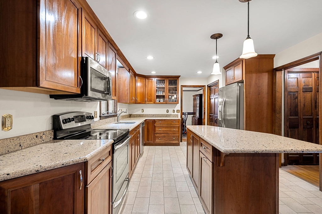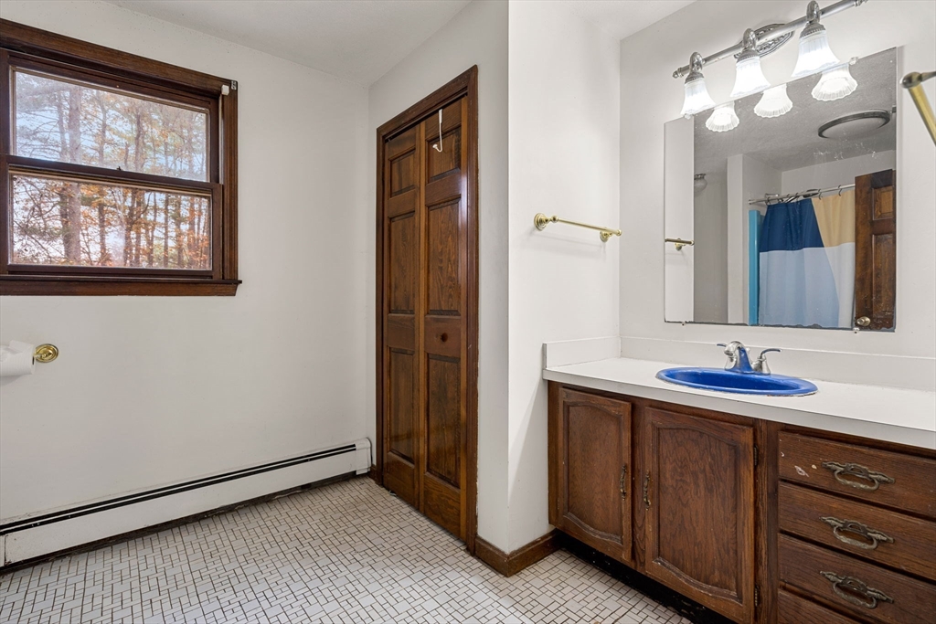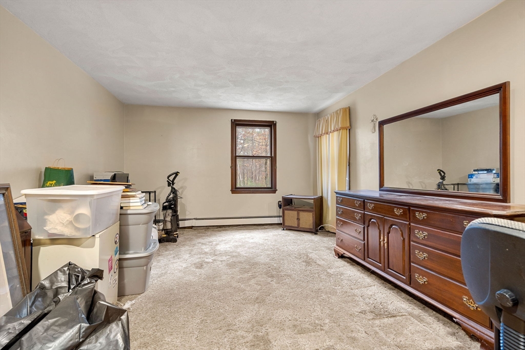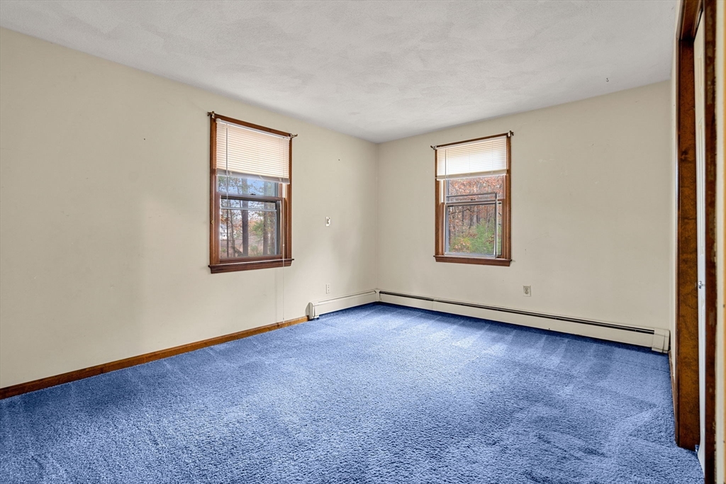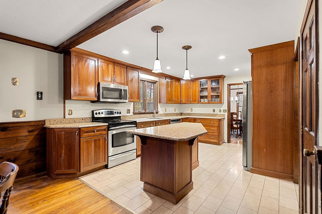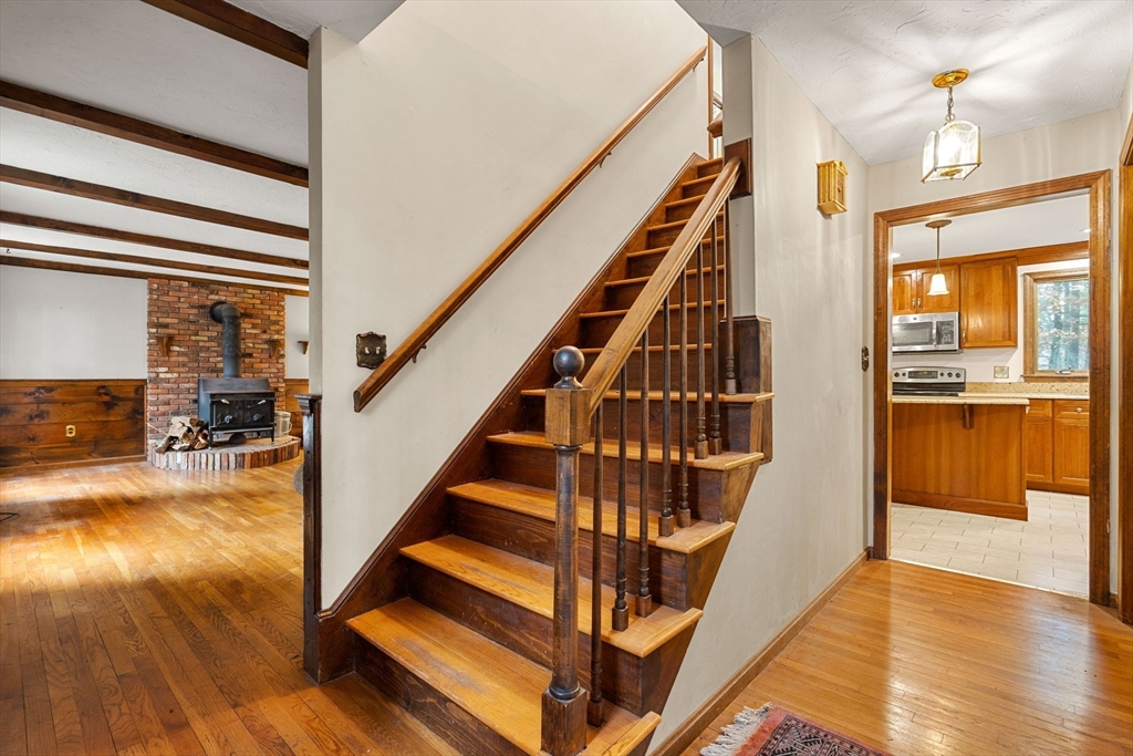 Opportunity in knocking! Nestled at the end of Off Groton School Road in Ayer, this single-family residence in Middlesex County presents an inviting home, ready to move in and begin its next chapter. The large family room w/ woodstove stands as a testament to comfort and style, inviting relaxation beneath a beamed ceiling, complemented by a distinctive wood wall that adds warmth and character. The eat-in kitchen, designed with functionality in mind, features a large kitchen island, perfect for meal preparation and casual dining, SS appliances & ample counter space. Heated sunroom/enclosed porch, half bath w/ laundry, formal dining room and formal living room complete the first floor. This property offers four spacious bedrooms and two full bathrooms on the second floor. Privacy abounds in the wooded backyard. Lots to love!