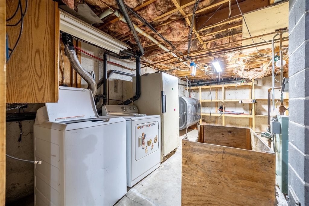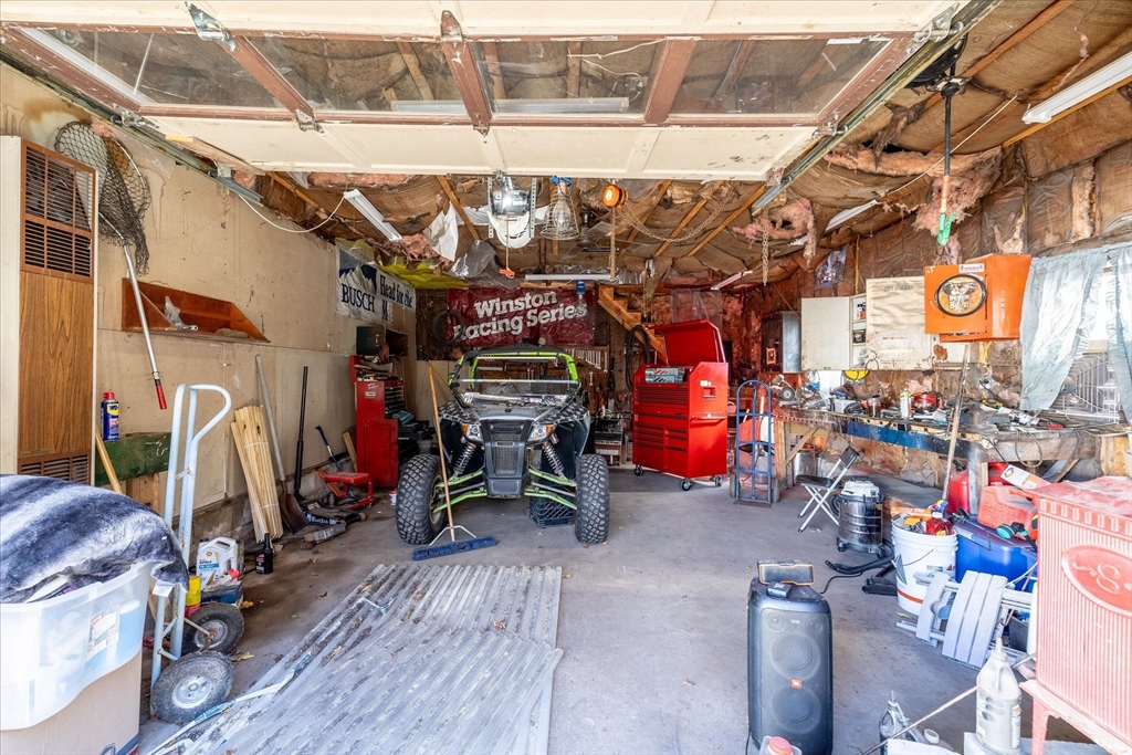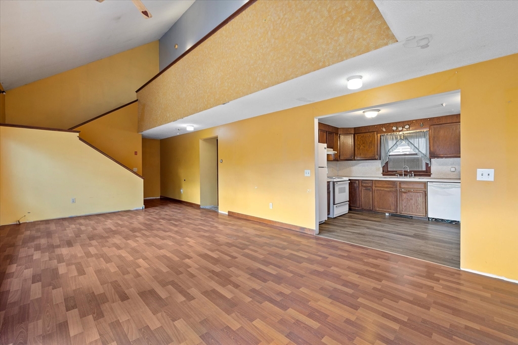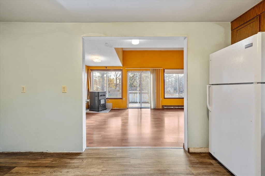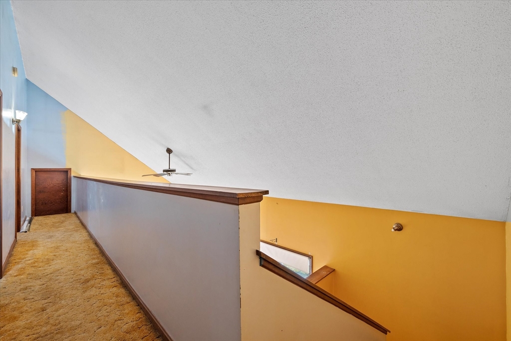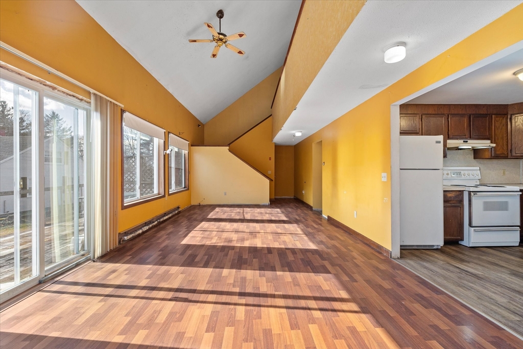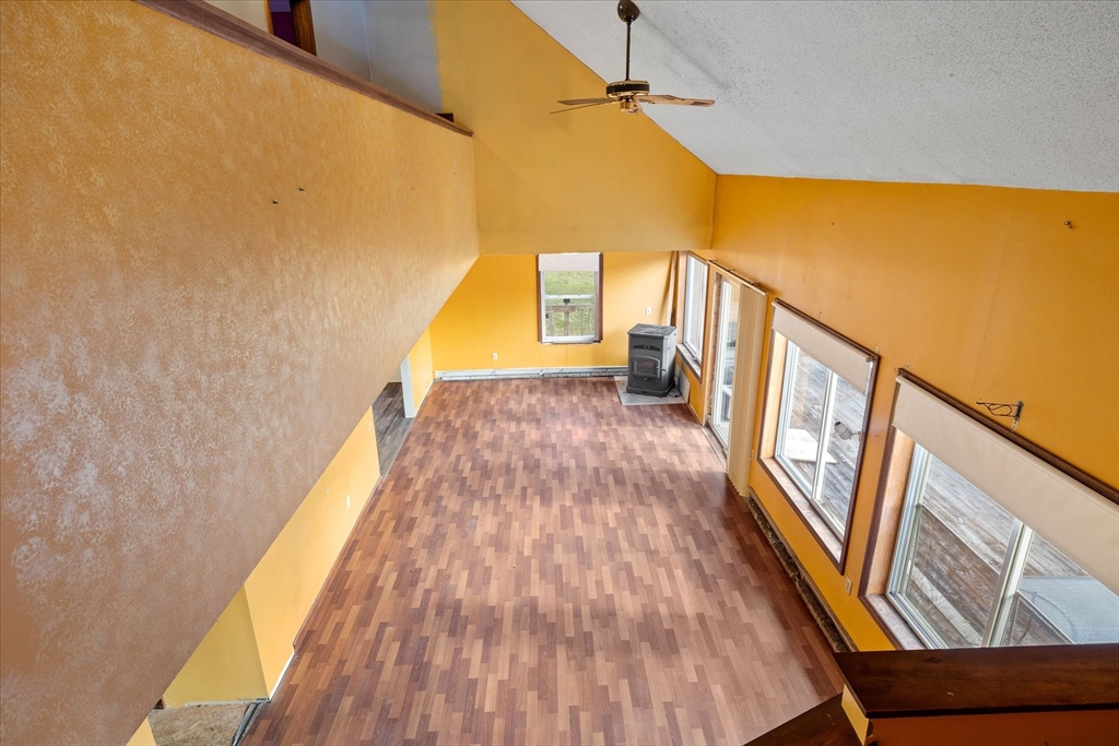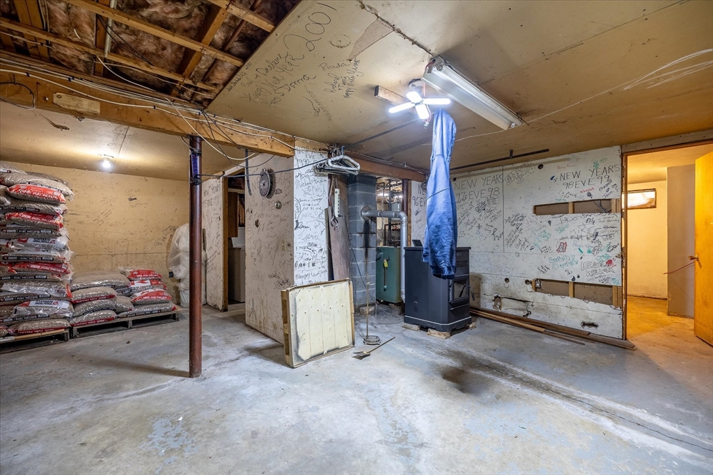 Welcome to 176 Prospect St - a bright and inviting 3-bedroom home full of potential, set on a beautiful 0.46-acre lot! The open-concept living and dining area is drenched in natural sunlight, featuring vaulted ceilings and a cozy pellet stove less than 5 years old - perfect for relaxing or entertaining. The spacious kitchen flows seamlessly into the main living space, while sliders lead out to a large deck overlooking the expansive backyard - ideal for gatherings, gardening, or simply enjoying peaceful outdoor space. One bedroom and full bath are on the main level, with two additional bedrooms upstairs. The basement offers laundry, storage, and a bonus room for future finishing. Enjoy peace of mind with a new sump pump and 50-year architectural roof (2005). The oversized detached garage with loft offers incredible space for a workshop, hobby area, or extra storage. With solid bones and great natural light, this home is the perfect opportunity to make it your own and build equity!