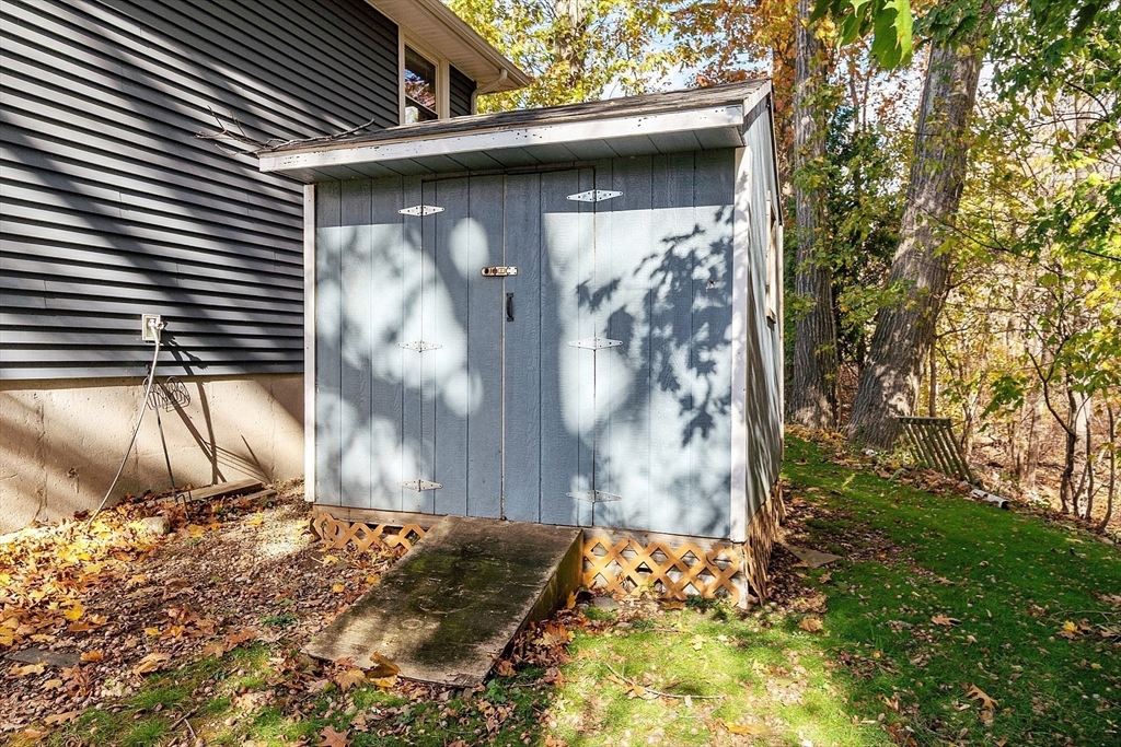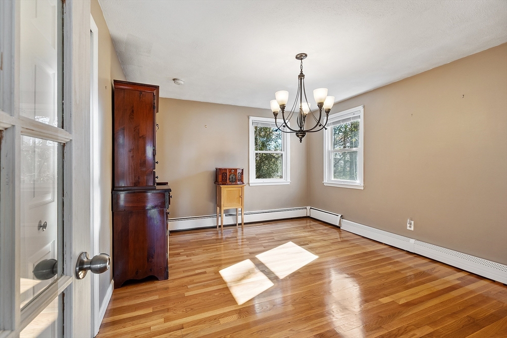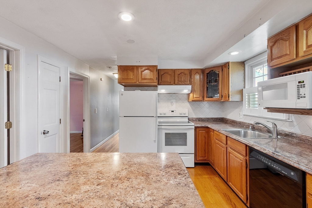 Welcome home to this move-in ready 3-bedroom, 2-bath hip-roof Ranch, perfectly set on a quiet dead-end street with views of Dorothy Pond! Enjoy gleaming hardwood floors throughout most of the main level. The sun-filled kitchen offers an island, pantry, and generous cabinetry with direct access to the 12x10 deck—perfect for morning coffee or evening relaxation. The mostly finished lower level provides endless possibilities—guest suite, teen space, or private home office—with its own entrance, kitchen, sitting area, and full bath. There is a one-car garage, shed, and a spacious yard. Recent updates include a newer boiler and oil tank (2020) plus replacement windows. Need more space… An adorable detached finished office or studio with a slider adds even more flexibility. Convenient commuter location. A wonderful home in a peaceful setting—don’t miss this one!