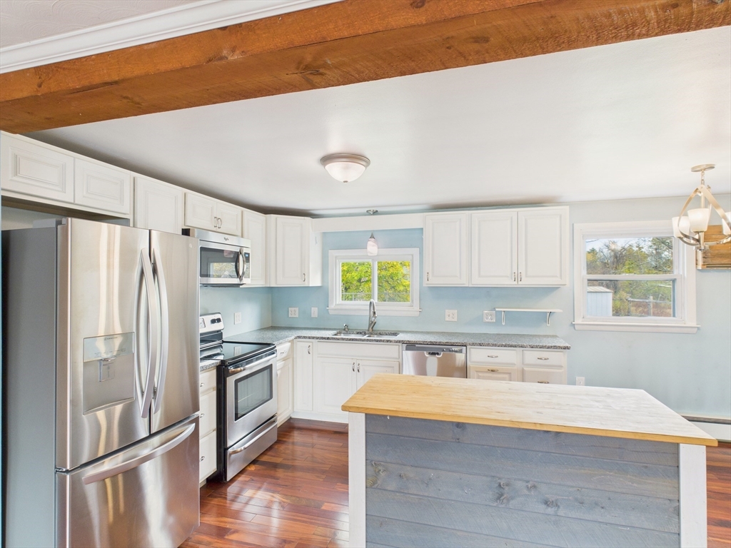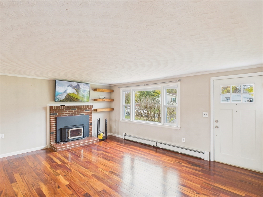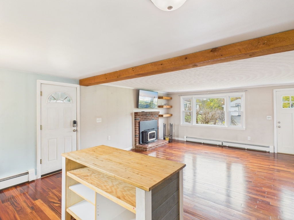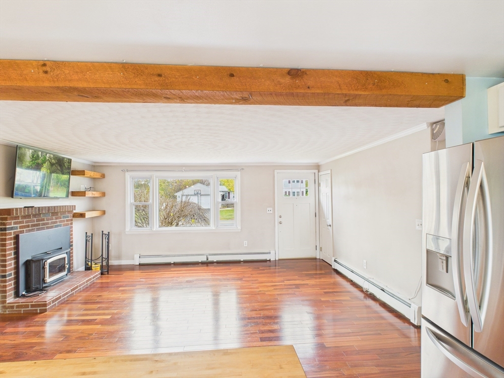 Discover the perfect blend of country charm and commuter convenience in this great 3 bedroom ranch. This bright and inviting home offers so much to love, making it an ideal place to live, relax, and entertain. The main level features a functional, open-concept layout encompassing the kitchen, and living area. Lovely hardwood floors flow throughout the upstairs, enhancing the bright and airy feel. Cozy up by the wood stove in the living room during the colder months .Head downstairs to the partially finished lower level, offering extra living space. Whether you envision a game room, a home gym, or a second family area, this space has you covered. The laundry room and a spacious workshop complete the lower level, adding exceptional functionality.Step outside and enjoy the generous yard that is fully fenced in. With ample space to play, garden, barbecue, and host gatherings, you will be impressed by this property! Showings begin at the Open House Saturday 11/8/2025 11AM-1PM