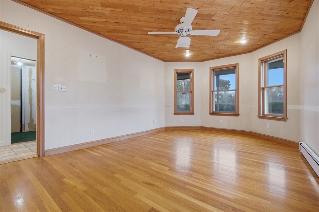Old-Style much sought after single family residence in Melrose; 02176 ~ The Hoover-Ripley Neighborhood in the East Side of Melrose. This well loved family home for many years is awaiting updating and revamping. Welcoming foyer, front living room with hardwood flooring, wood slat ceiling and several large windows. Fully applianced kitchen with plenty of oak cabinetry and a dining area with many windows providing much natural light, overlooking a serene private yard. Big old stairway leading to the second floor where you'll find three bedrooms and a full bathroom as well as a walkup attic providing an additional floor (3rd floor) to be finished as a wonderful master suite, playroom or office area; the possibilities are endless! Full basement with laundry and interior and exterior access. Detached garage, driveway providing parking for several vehicles. Great opportunity to own this desirable property with its blend of classic appeal and modern potential, awaiting its next chapter!
